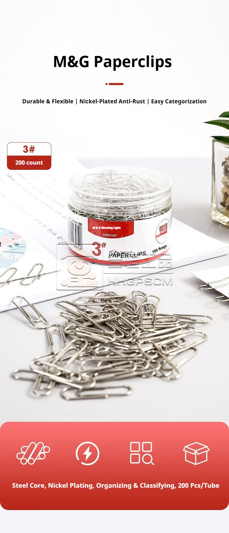 Packing list:13# Nickel-Plated Paper Clips Rust-Resistant Metal Paper Clips Office Supplies 200 Pieces/Tube ABS91697
