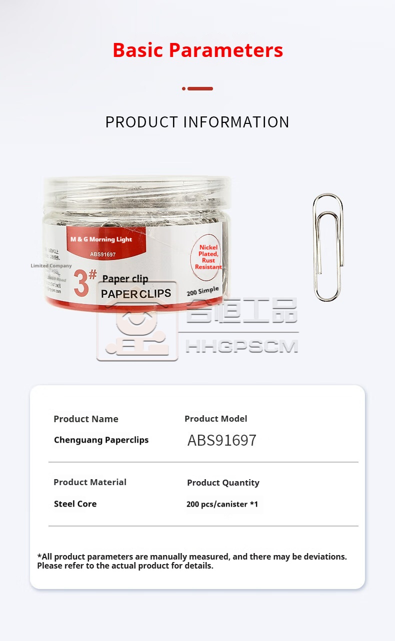 Product name:3# Nickel-Plated Paper Clips Rust-Resistant Metal Paper Clips Office Supplies 200 Pieces/Tube ABS91697