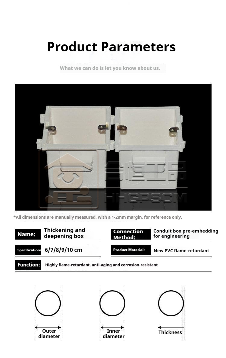 Packing list:100PVC Flush-Mount Switch Box PVC Conduit Box Junction Box Pre-Installed Box Integrated Conduit Box Flush-Mount Base Box