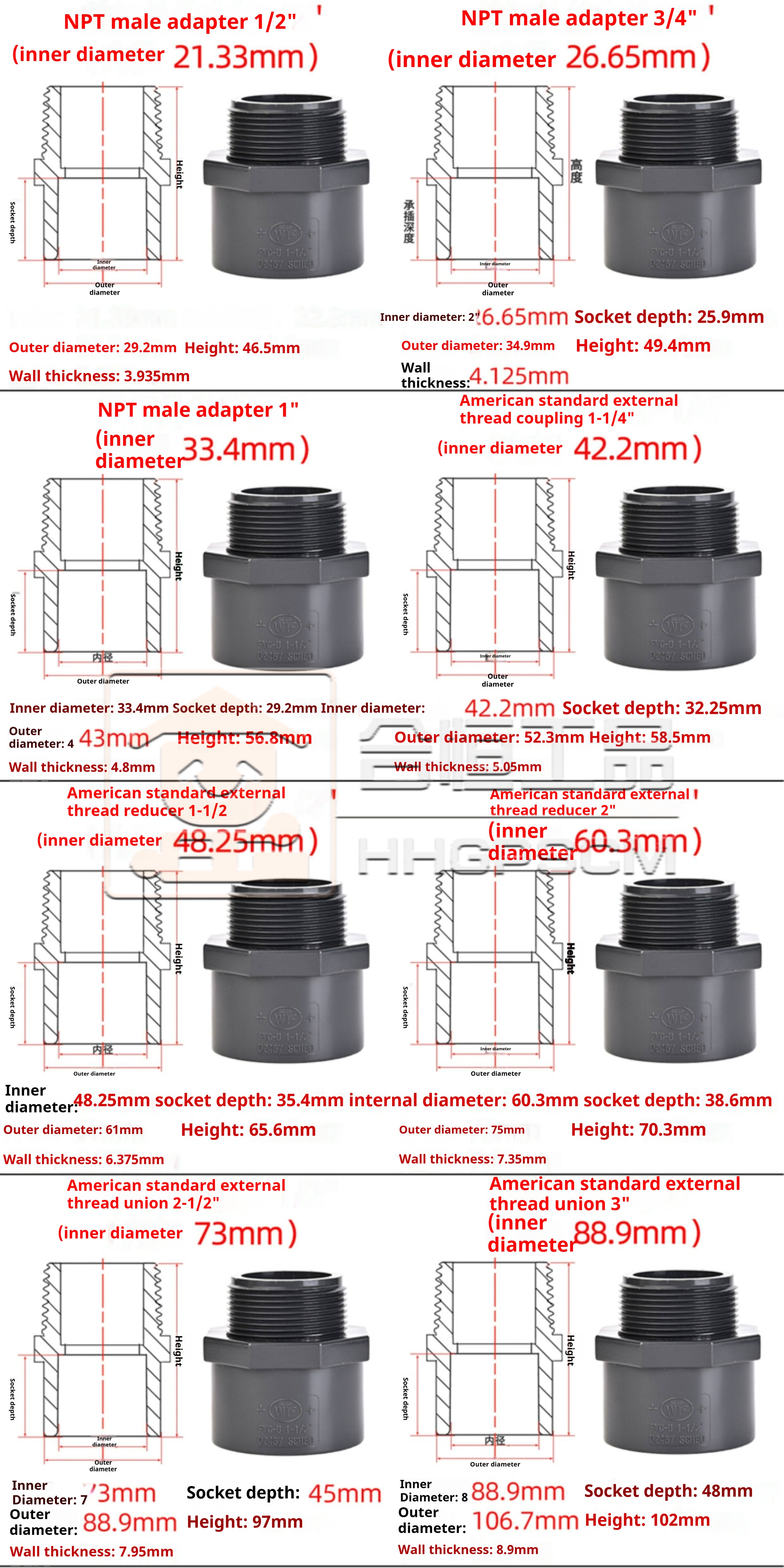 Packing list:1American Standard Size UPVC Male Thread Direct Chemical-Grade External Thread Industrial PVC Pipe Fitting Water Pipe Straight Coupling