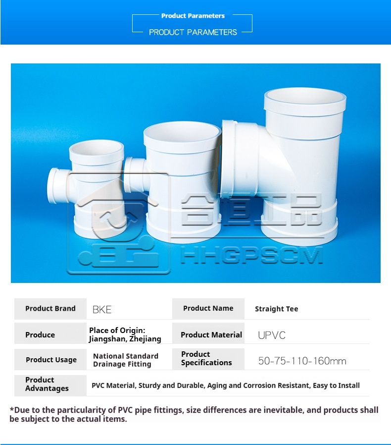 Packing list:1PVC reducing tee, drainage pipe fittings, 50mm equal diameter reducing tee fittings