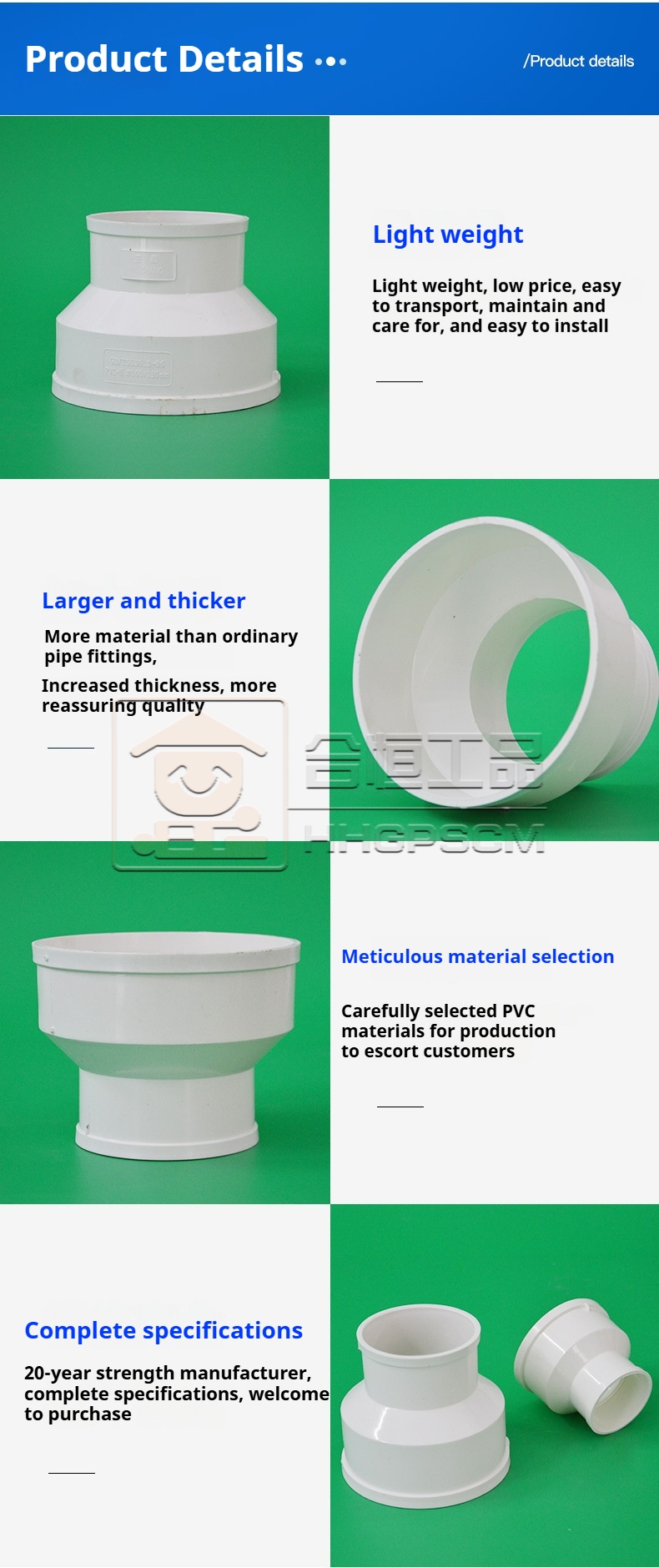 Packing list:1PVC drain reducer, concentric reducer, straight connector, PVC reducer sleeve