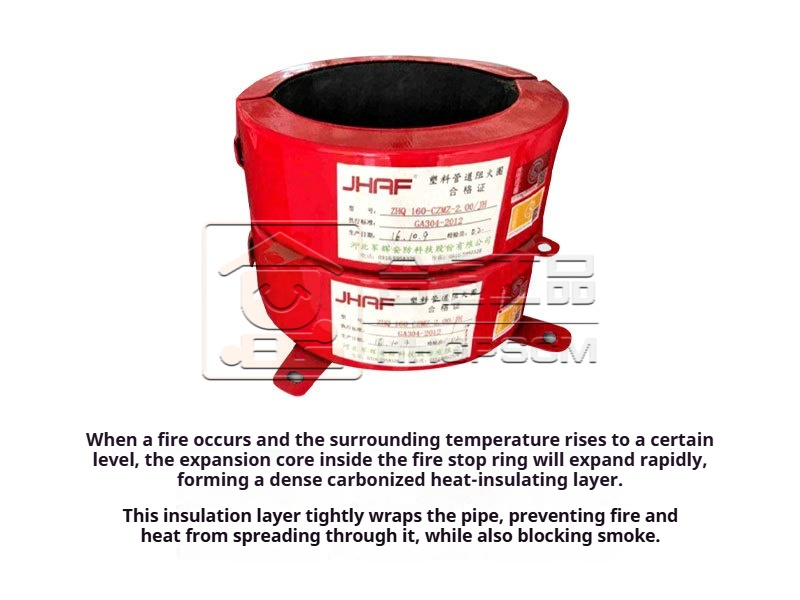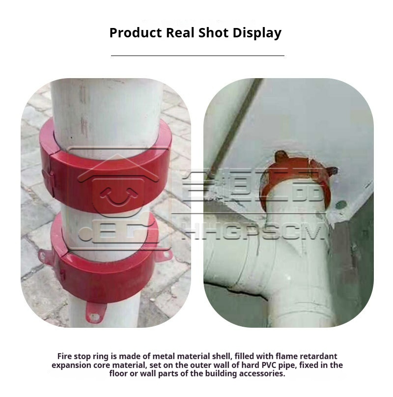 Product name:Fire-resistant plastic pipe flame arrestor rings, national standard fireproof rings, metal flame-retardant rings for PVC drainage pipes
