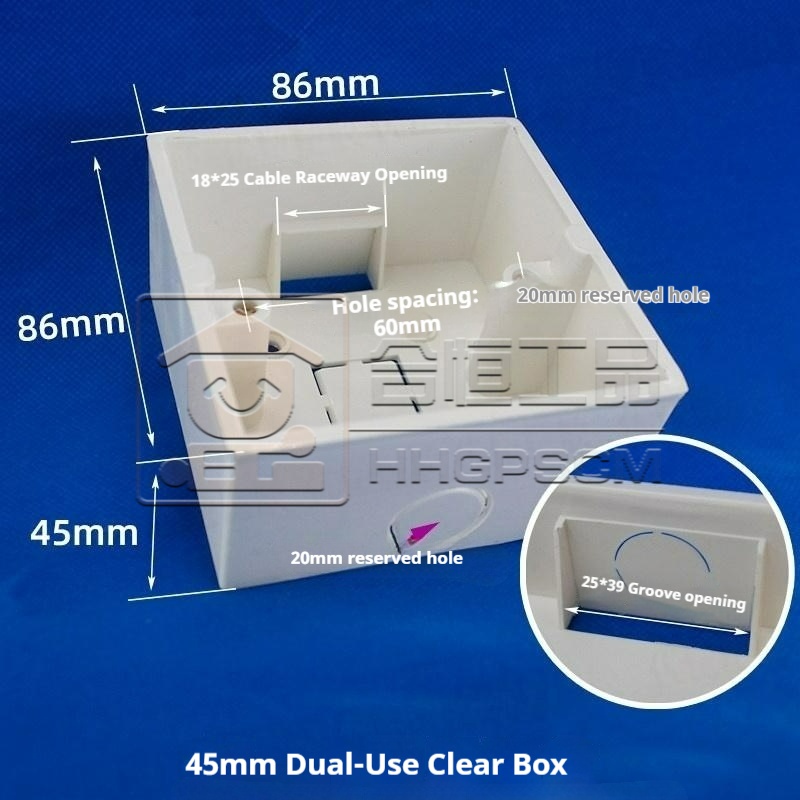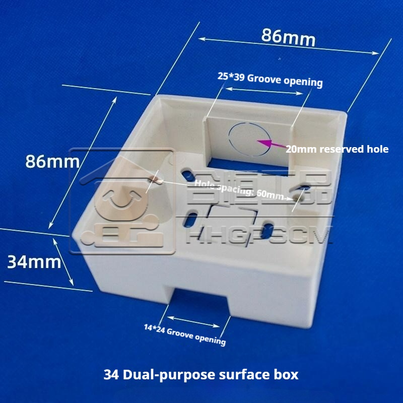 Product name:Minghe 86 Series PVC Reinforced Switch and Outlet Junction Box Conduit and Cable Tray Base Box Thin Surface-Mounted Junction Box Surface-Mounted Junction Box