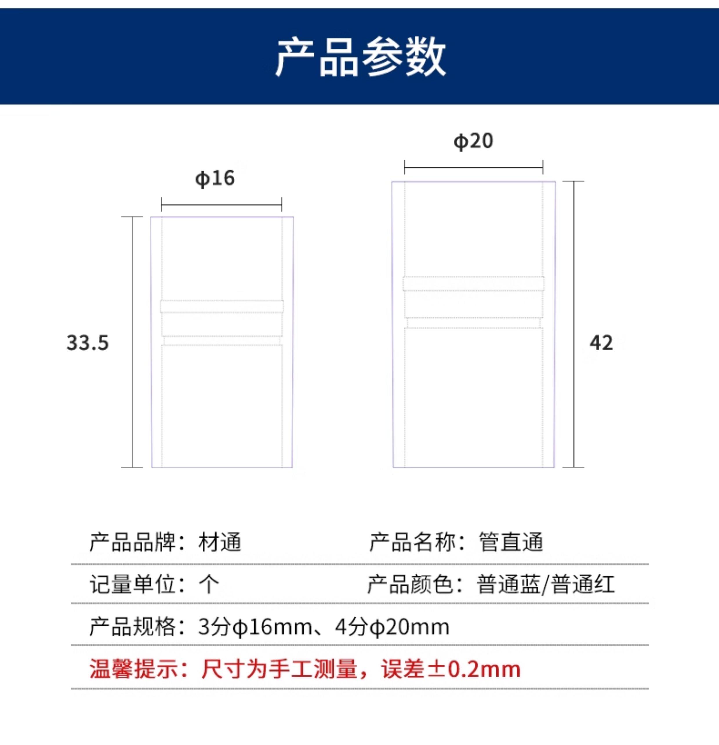 包装清单:1材通pvc线管直通红蓝塑料接头4分20mm电工穿电线套管直接线管配件