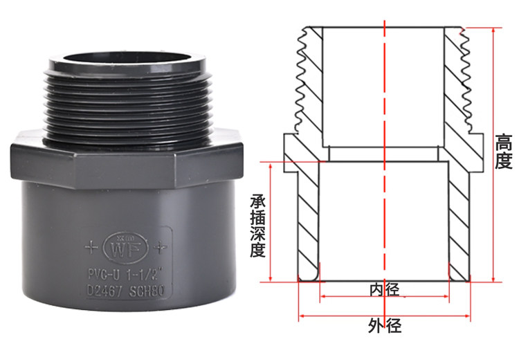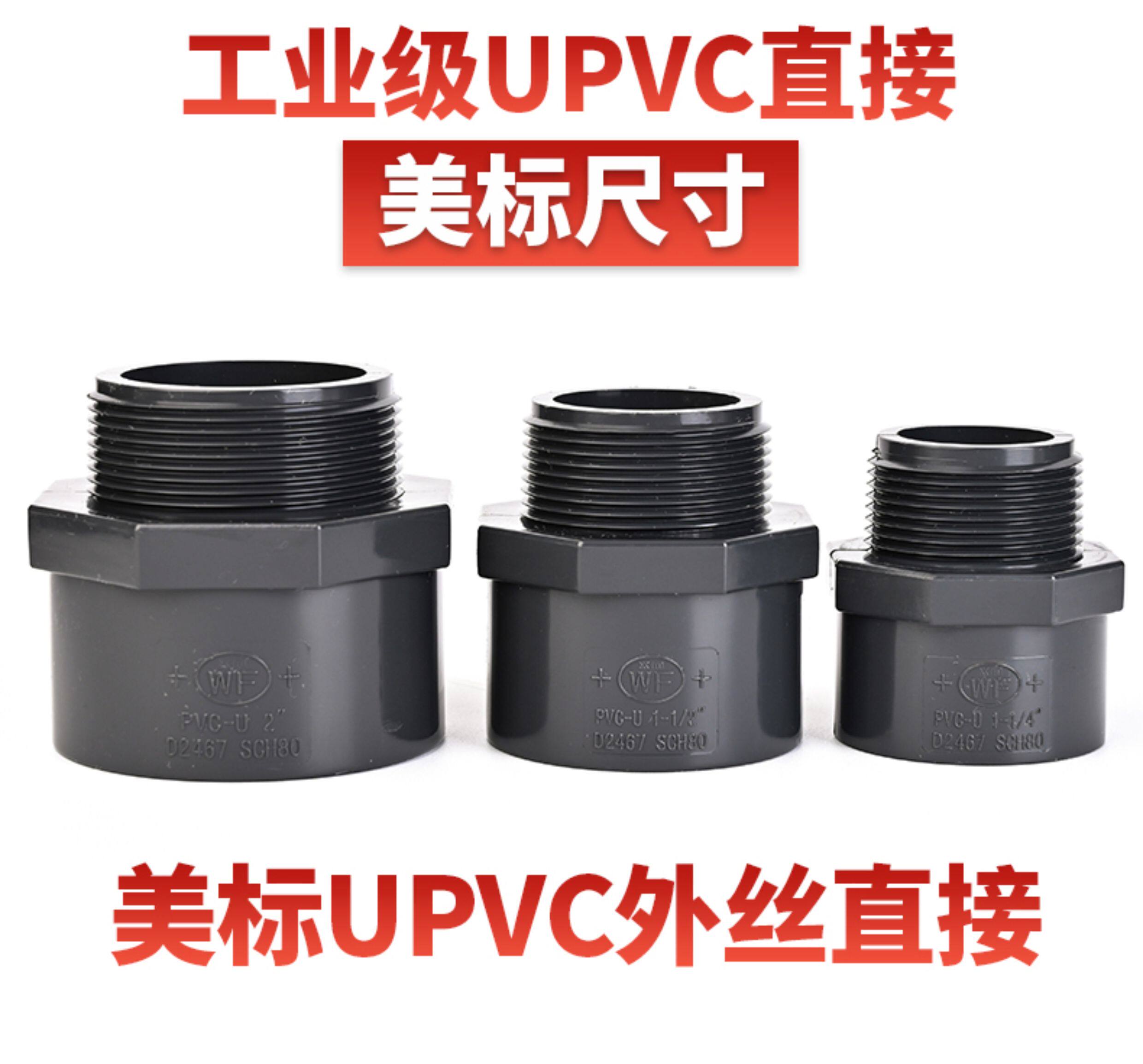 商品名称:美标尺寸UPVC外丝直接化工外牙螺纹工业PVC管道接头水管直通对接