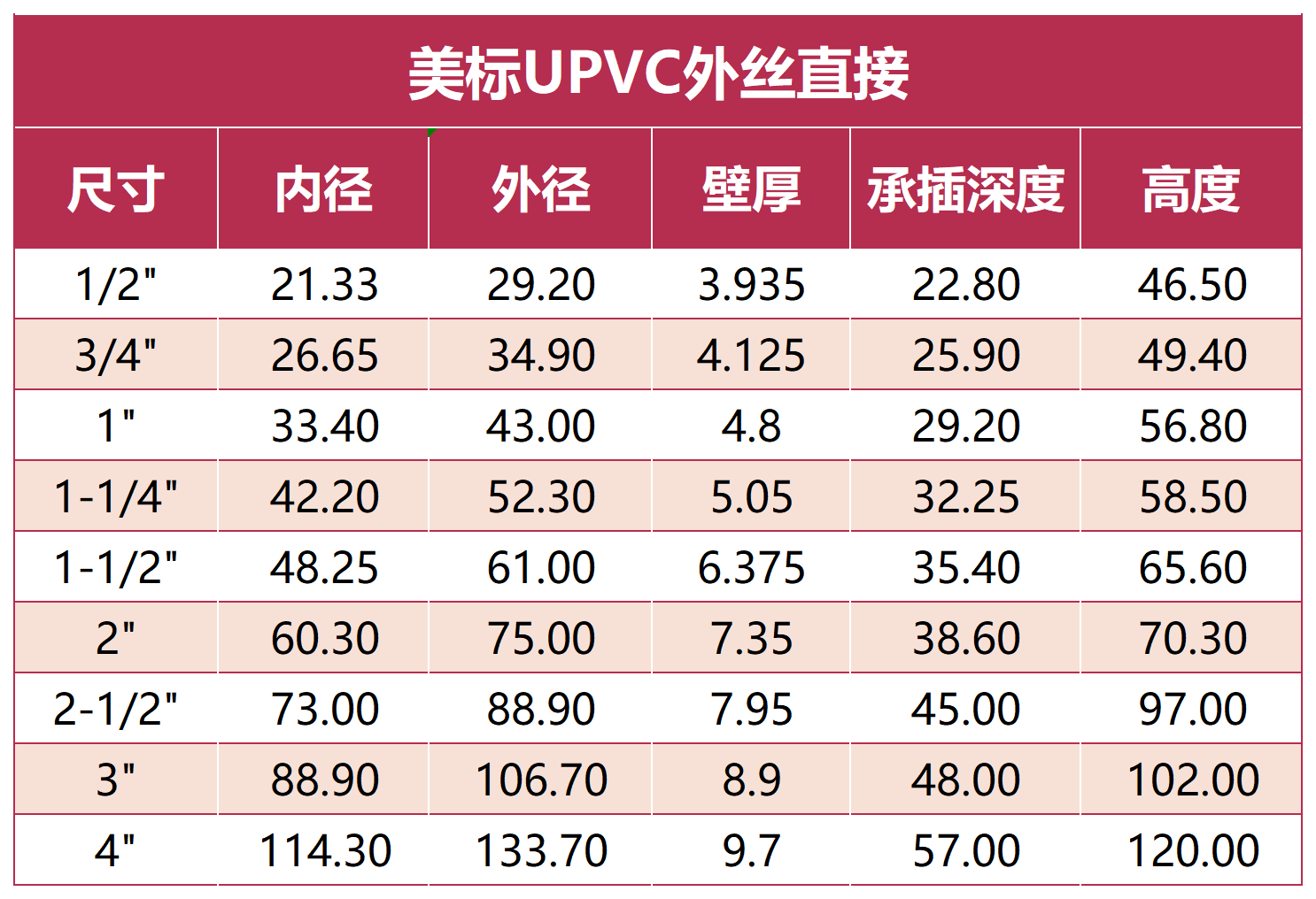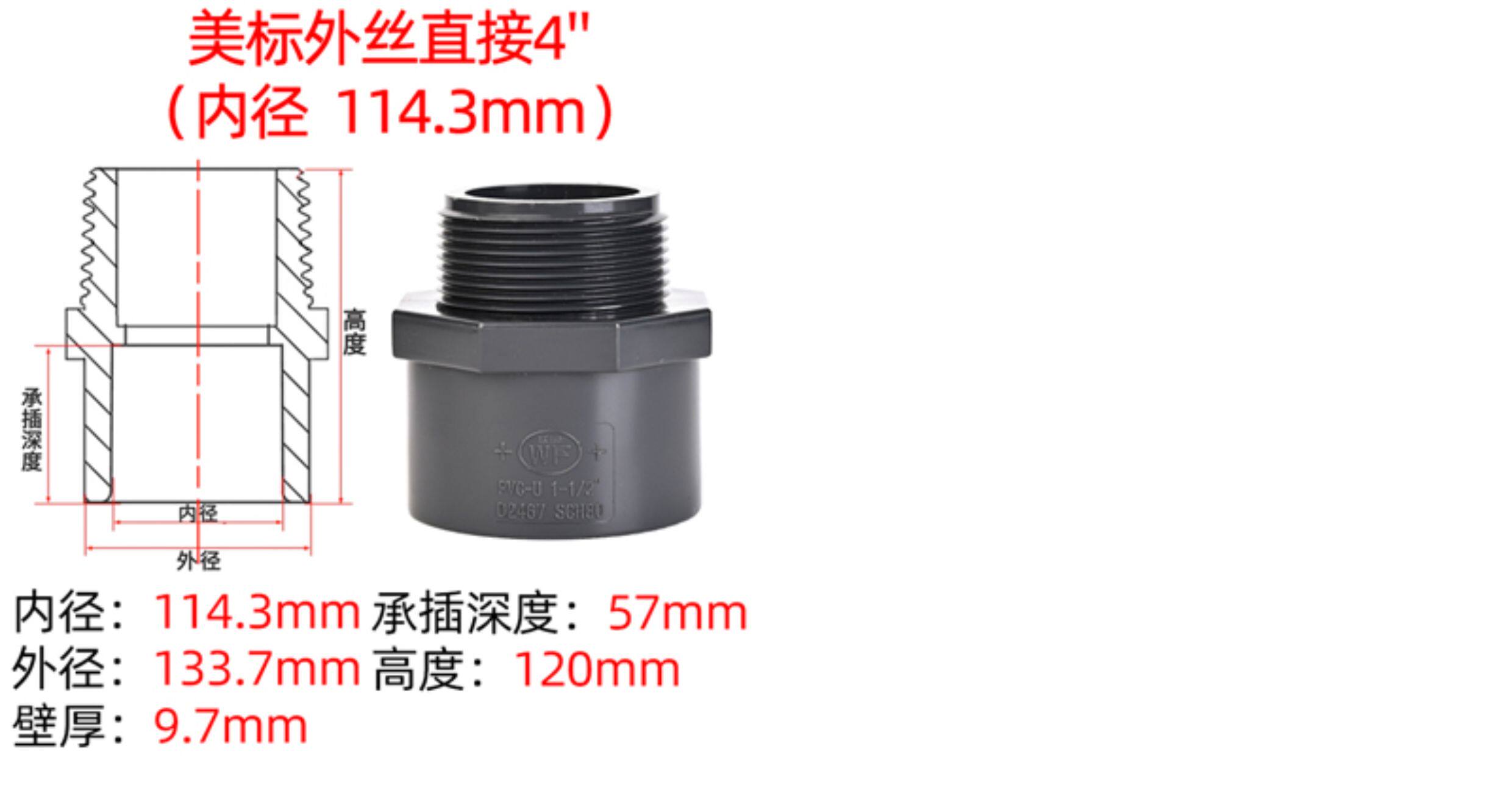 包装清单:1美标尺寸UPVC外丝直接化工外牙螺纹工业PVC管道接头水管直通对接