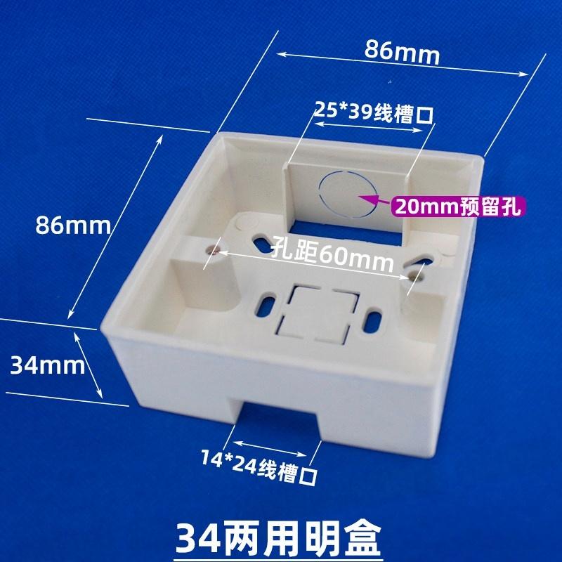 明盒86型pvc加厚开关插座接线盒 线槽线管底盒薄明装下线盒明线盒