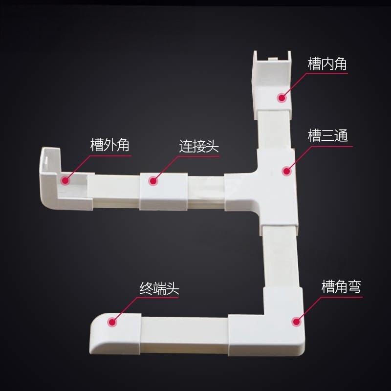 PVC线槽阴角弯头PVC线槽4分6分8分明装方形阻燃平弯阳角阴角三通堵头终端配件