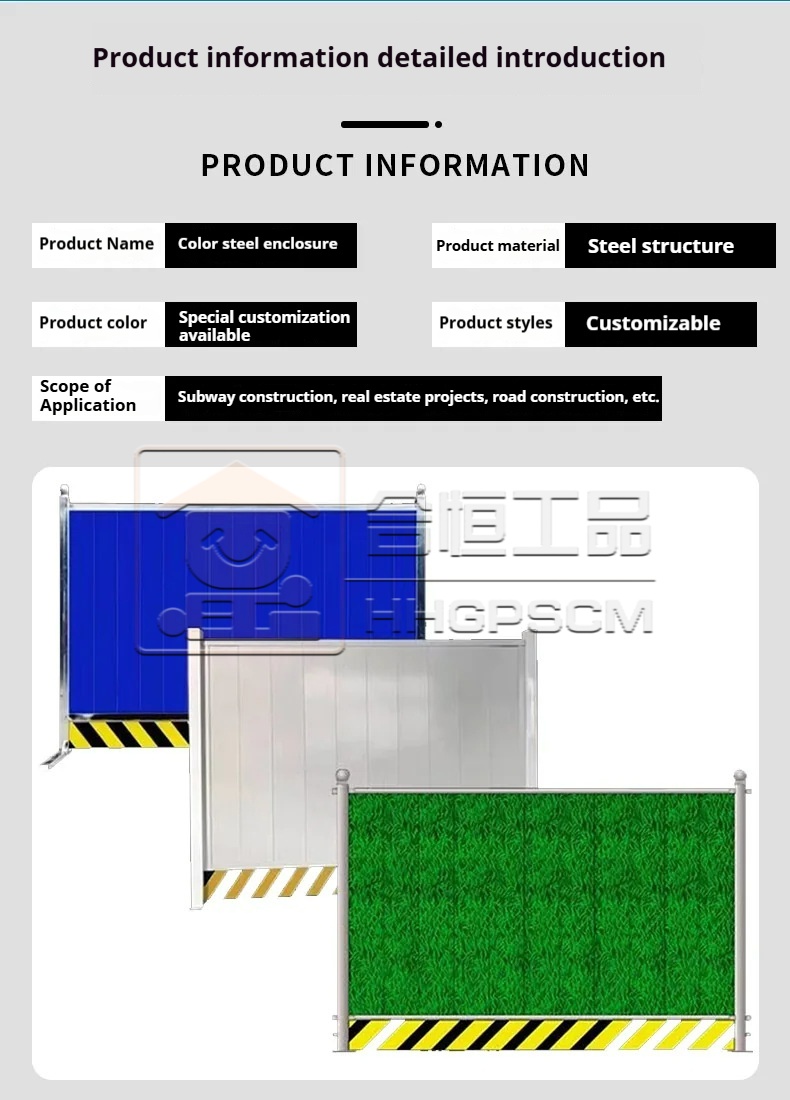 Packing list:1Construction Site Color-Coated Steel Fencing, Municipal Road Grass-Patterned Metal Fencing, Prefabricated Roman Column Fencing, and Barrier Panels