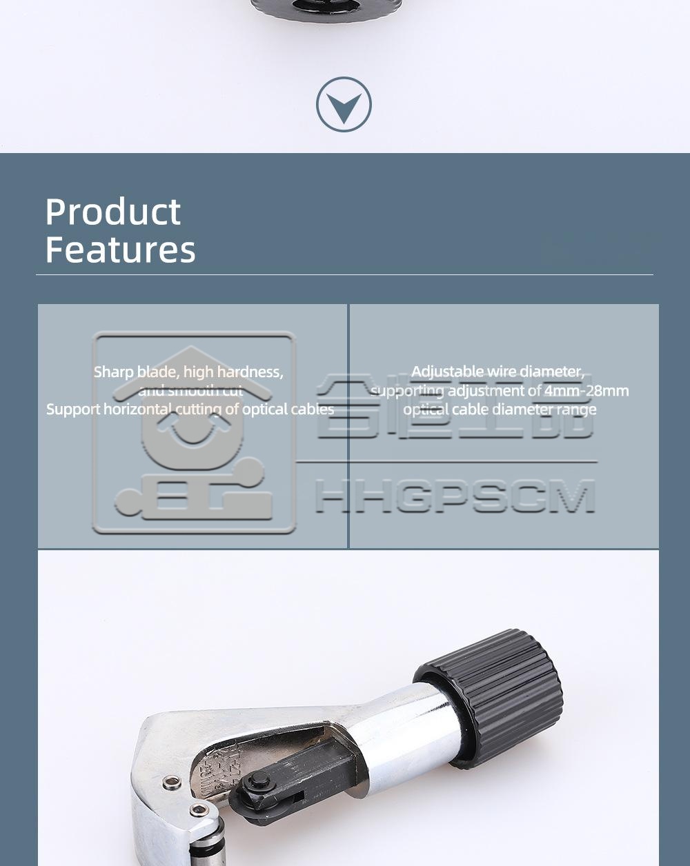 Packing list:1Fiber Optic Cable Stripper 4-28mm Horizontal Cable Stripper Stripper for Cutting Fiber Optic Cable Outer Sheath Wire Stripper