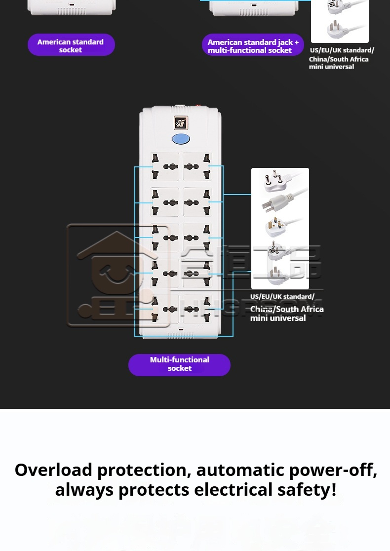 Packing list:1Multi-functional Power Strip with Overload Extension Cord