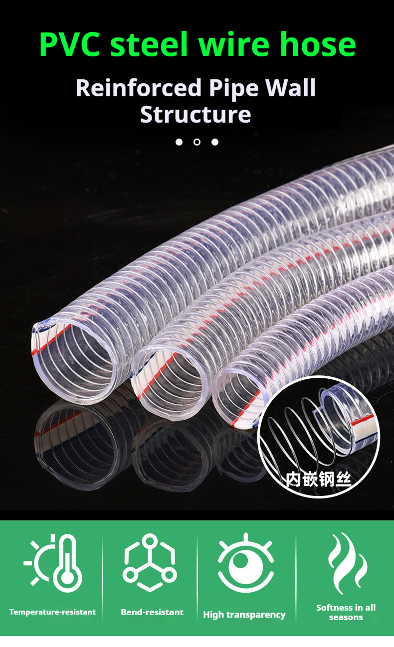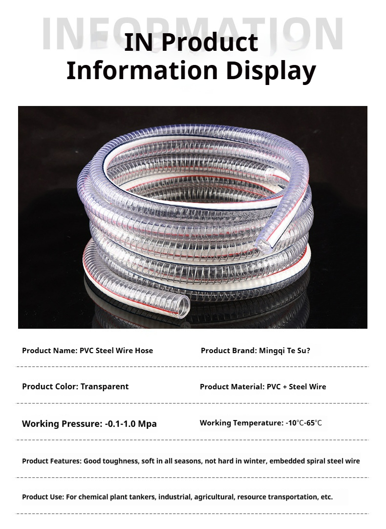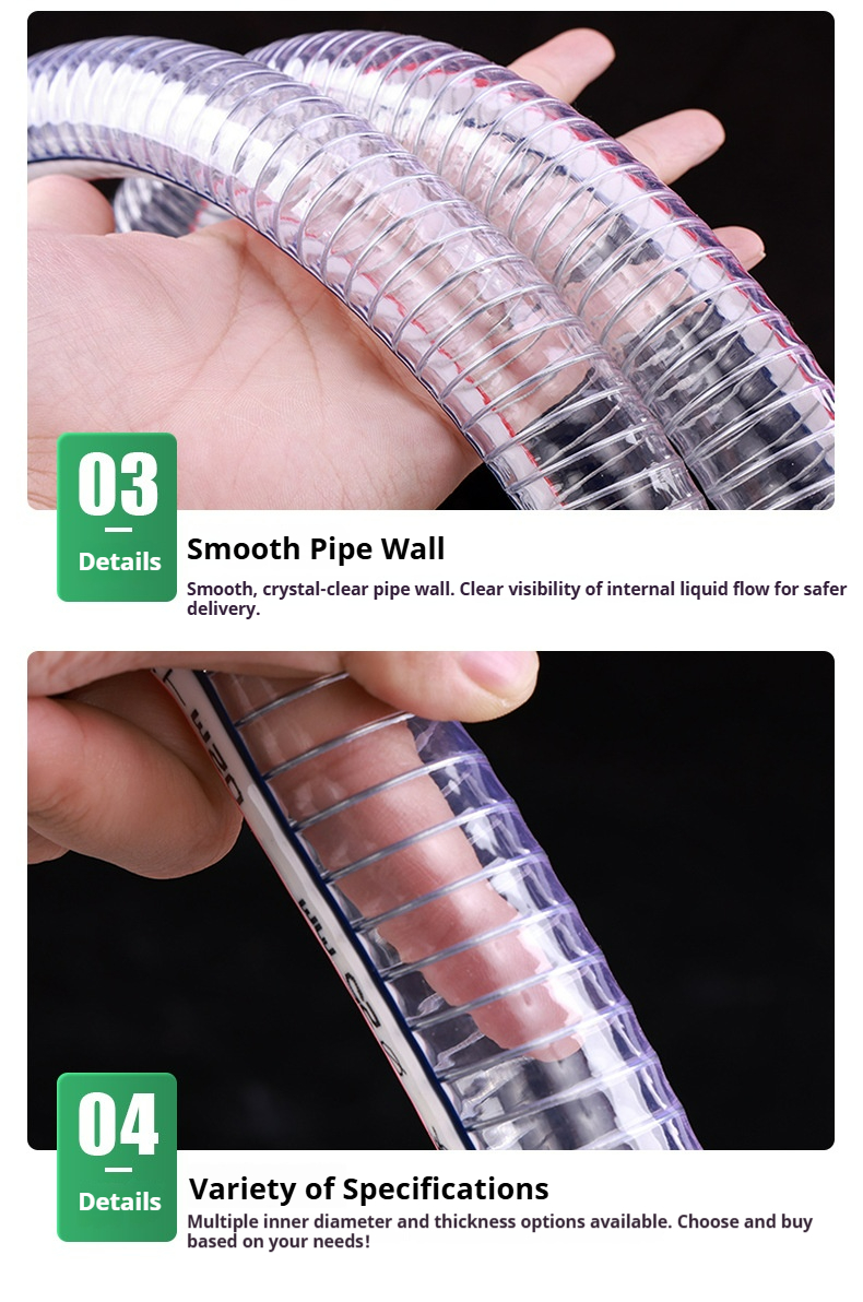 Packing list:1Steel Wire Reinforced Transparent PVC Plastic Hose for Water/Oil Pumping, Industrial & Agricultural Use
