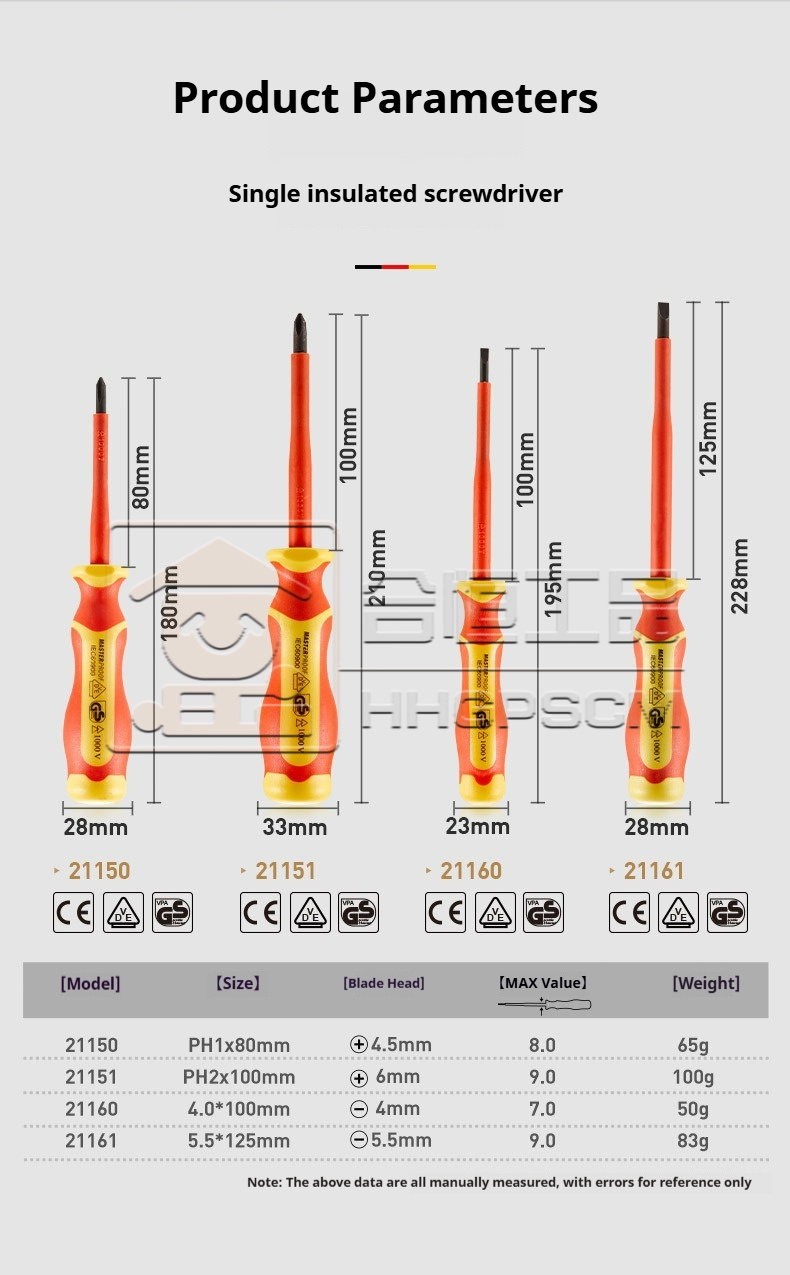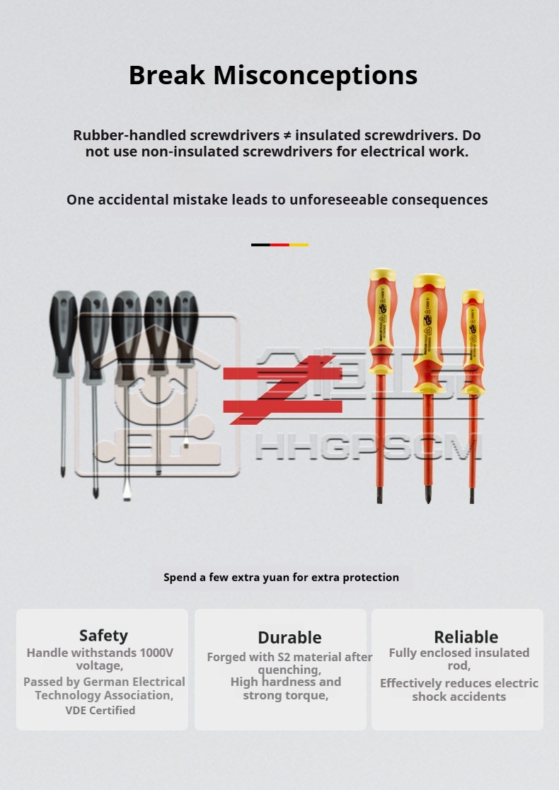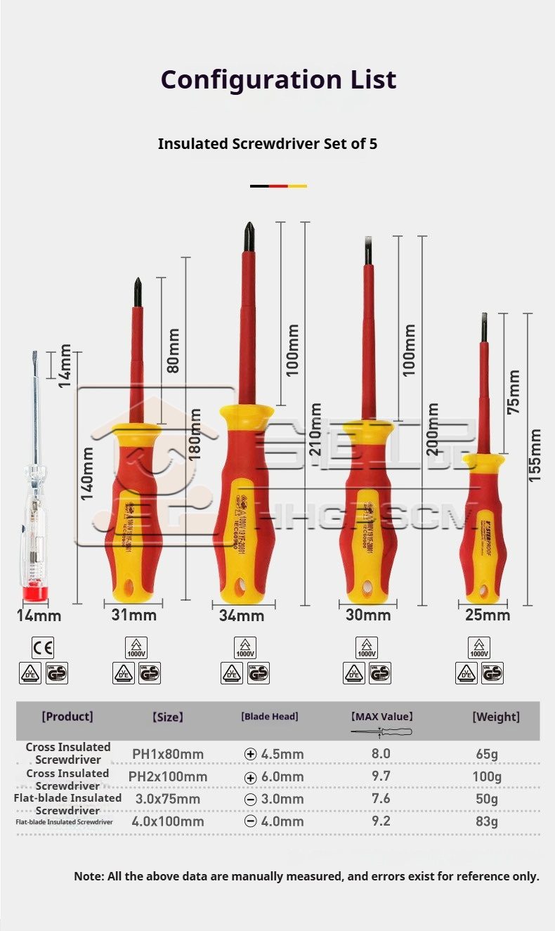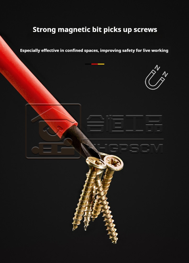 Packing list:1Electrician's Insulated Screwdriver VDE Phillips Screwdriver Specialized Tool Set Magnetic High-Voltage Screwdriver