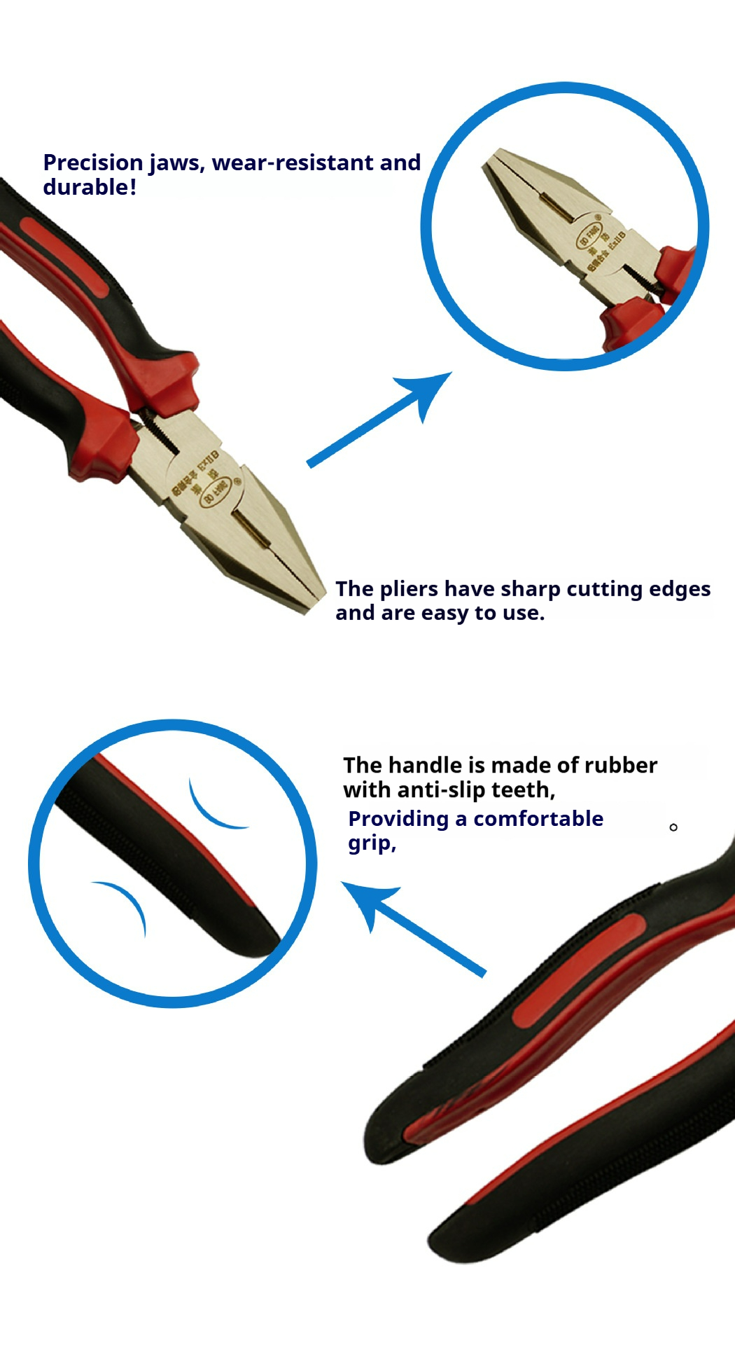 Product name:Explosion-Proof Pliers 6-inch, 7-inch, 8-inch, 10-inch Aluminum-Copper Alloy Hand Pliers Explosion-Proof Vise Pliers