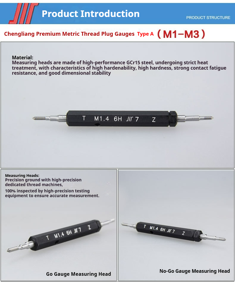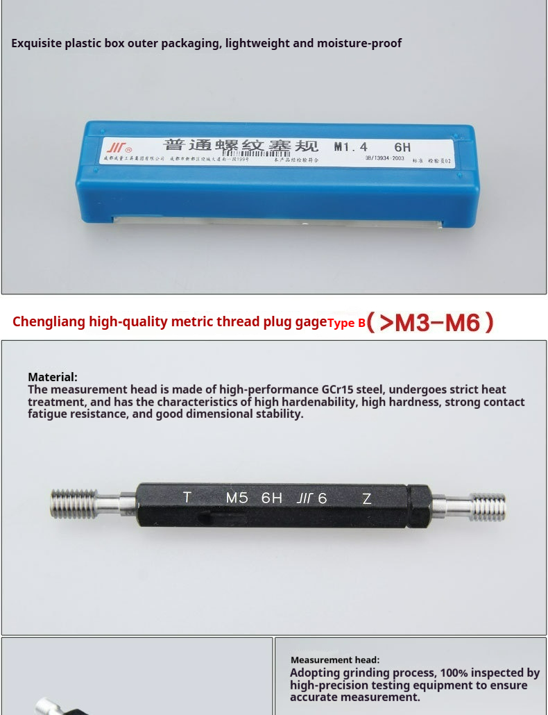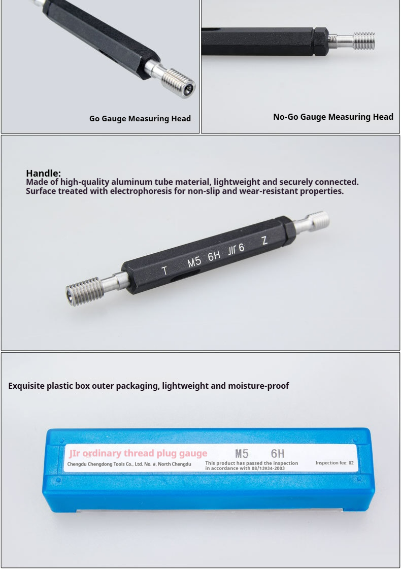 Product name:Thread Plug Gauges 6H Pass/Fail Gauges Metric Coarse/Fine Thread Gauges M1, M1.2, M1.4, M1.6, M1.8, M2, M5