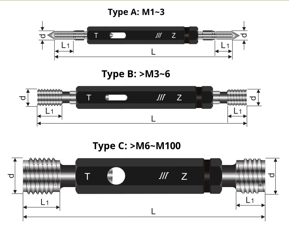 Thread Plug Gauges 6H Pass/Fail Gauges Metric Coarse/Fine Thread Gauges M1, M1.2, M1.4, M1.6, M1.8, M2, M5