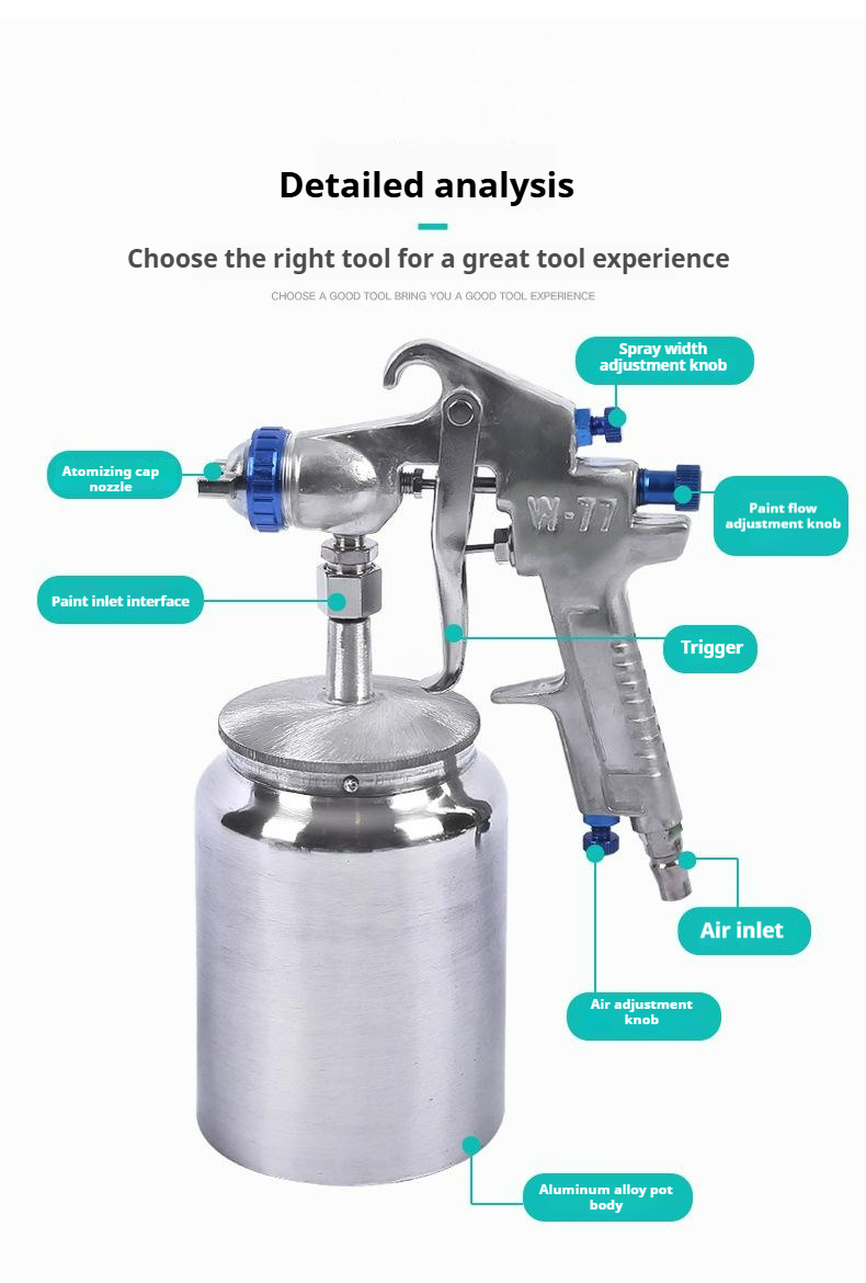 Product name:Spray Gun for Automotive and Furniture Latex Paint High Atomization Pneumatic Spray Gun Tool Spray Gun