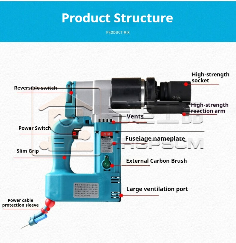 Product name:Electric torque wrench with adjustable torque setting; for loading and unloading high-strength bolts in steel structures, bridges, and pipelines