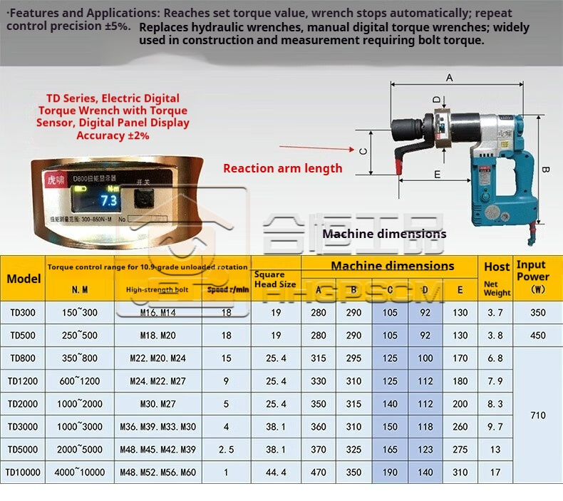Product name:Electric torque wrench, adjustable torque, high-strength bolt loading and unloading wrench for steel structures, bridges, and pipelines