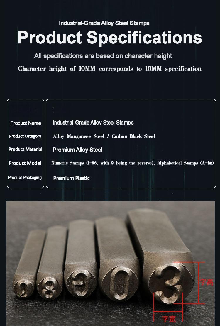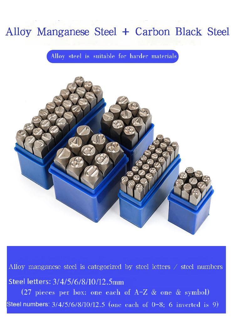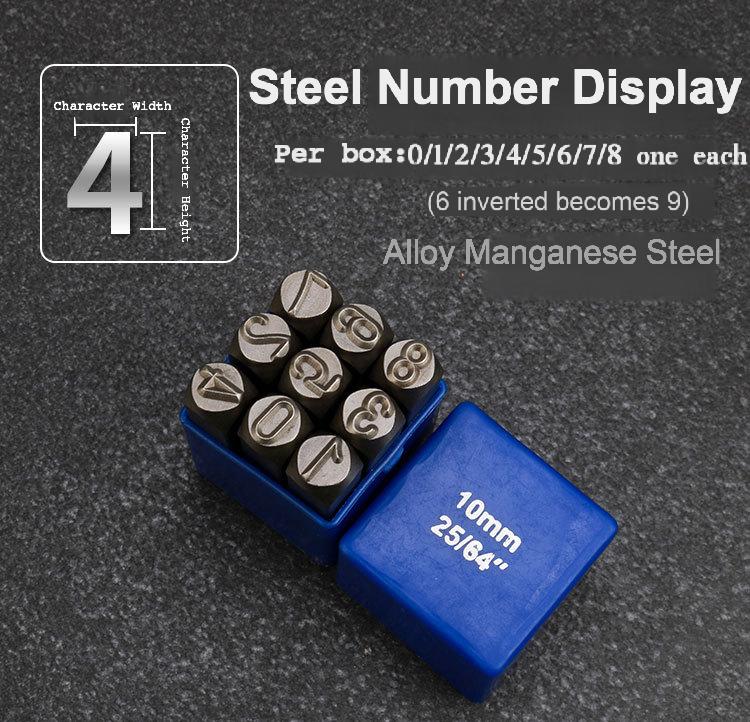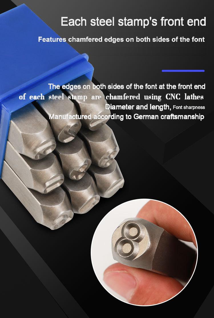 Packing list:1Typeface steel stamps Steel letter punches Steel number punches Steel number stamps Numeric symbols