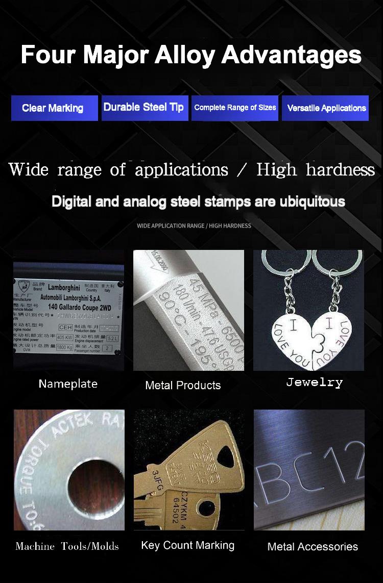 Product name:Typeface steel stamps Steel letter punches Steel number punches Steel number stamps Numeric symbols