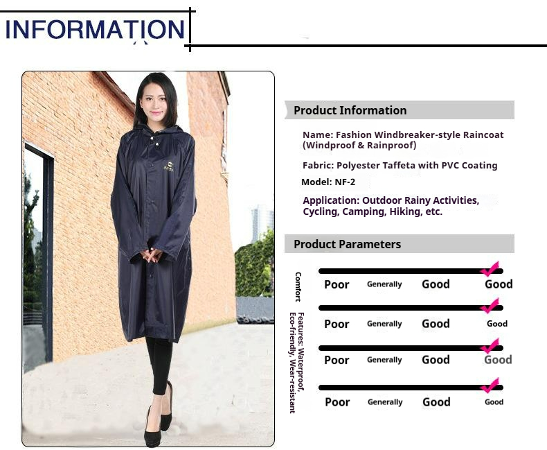 Packing list:1Raincoat-Style Outdoor Windbreaker Long-Length for Motorcycle, Electric Scooter, and Hiking Unisex