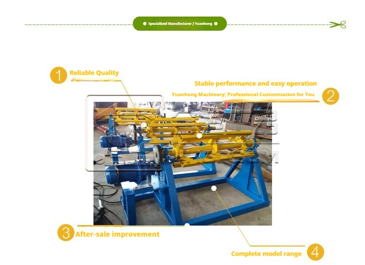 Packing list:11.25-meter steel coil uncoiler 5-ton steel coil loading support frame 1-meter color steel coil loading rack for roll forming machine