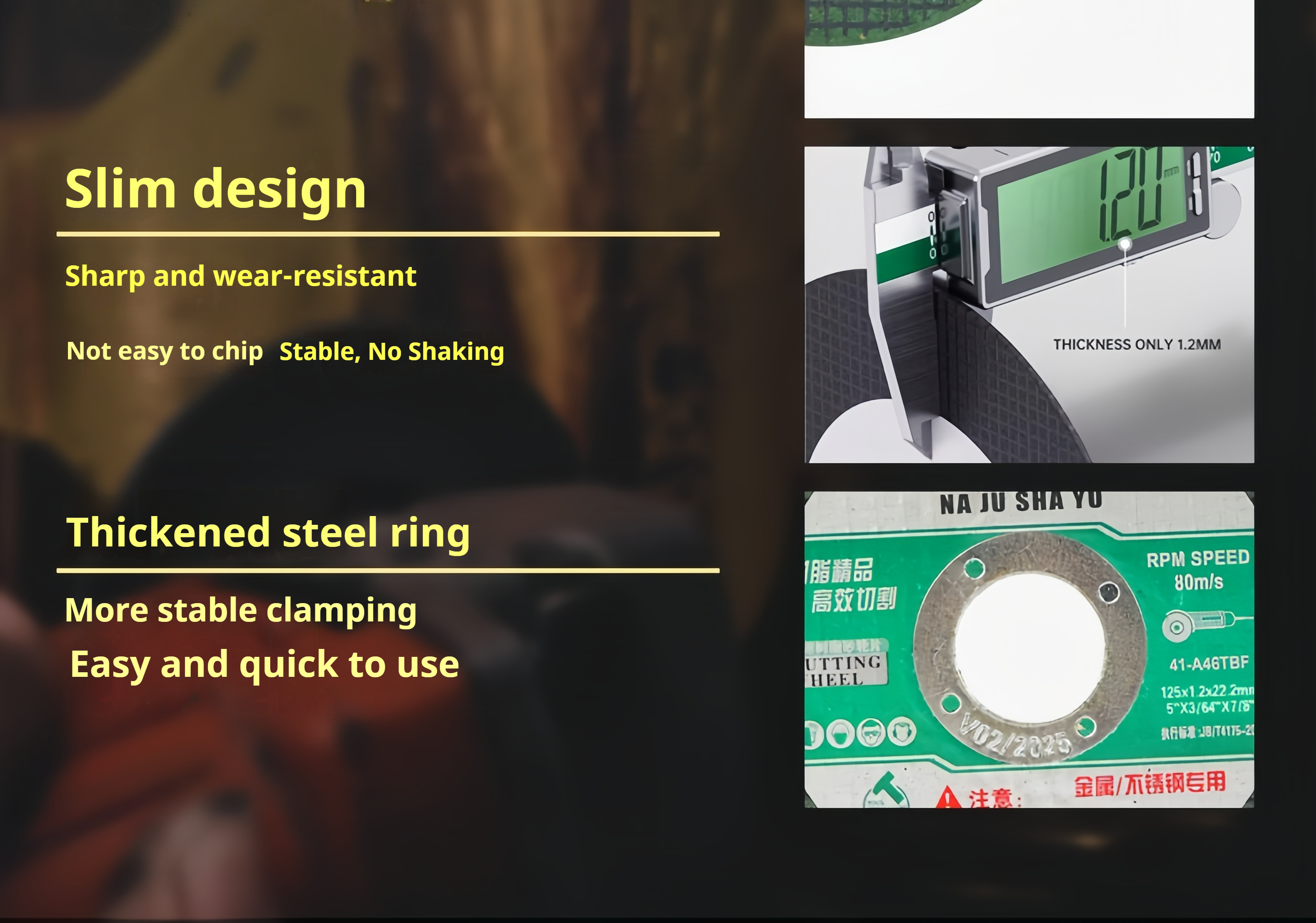 Packing list:1125*1.2*22mm Green Disc, Red Disc, Black Disc Resin Cutting Disc Resin Grinding Wheel Cutting Disc Grinding Wheel Disc