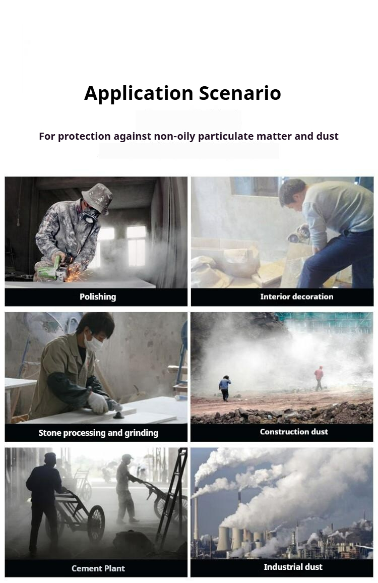 Packing list:1Dust-proof mask Dust mask Grinding and renovation cement dust mask Flour mill and coal mine dust mask Industrial dust protection mask KN95-grade filter mask 3700