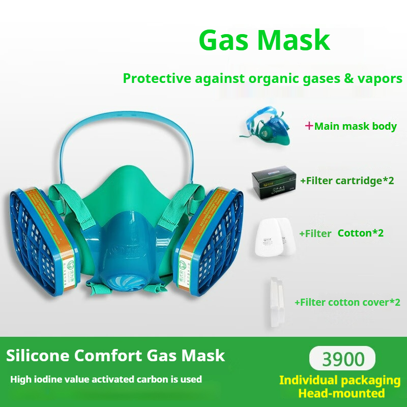3900 Silicone Gas Mask Dual-Canister Gas Mask Specialized for Spray Painting Protection Against Toxic Gases Industrial Dust and Grinding Renovation Half-Face Mask