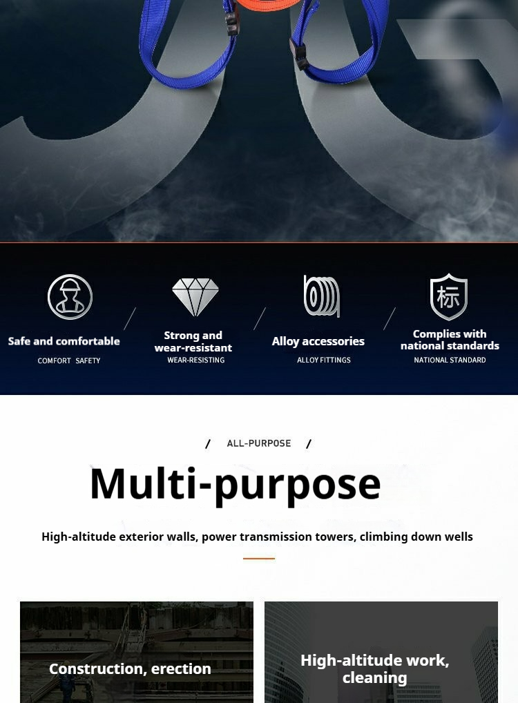 Product name:Five-point safety harness Wide waist belt Construction site high-altitude rescue and fall arrest safety harness