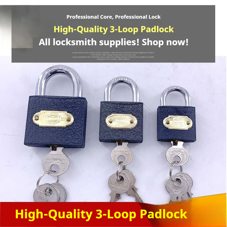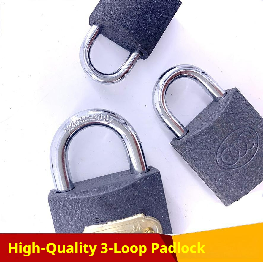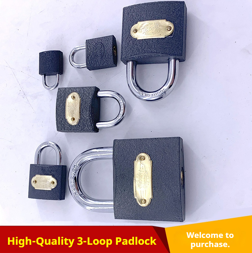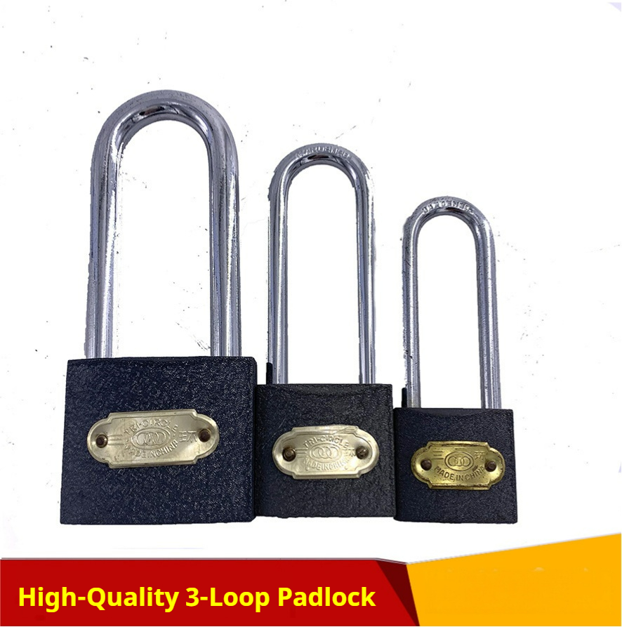 现货 Triple-ring padlock Cabinet/warehouse door lock Door lock with long beam and thick plate