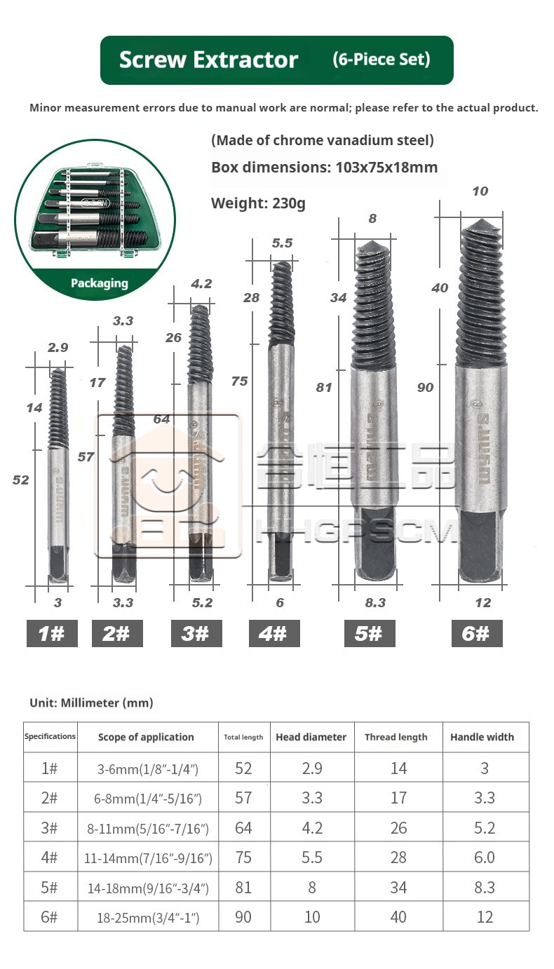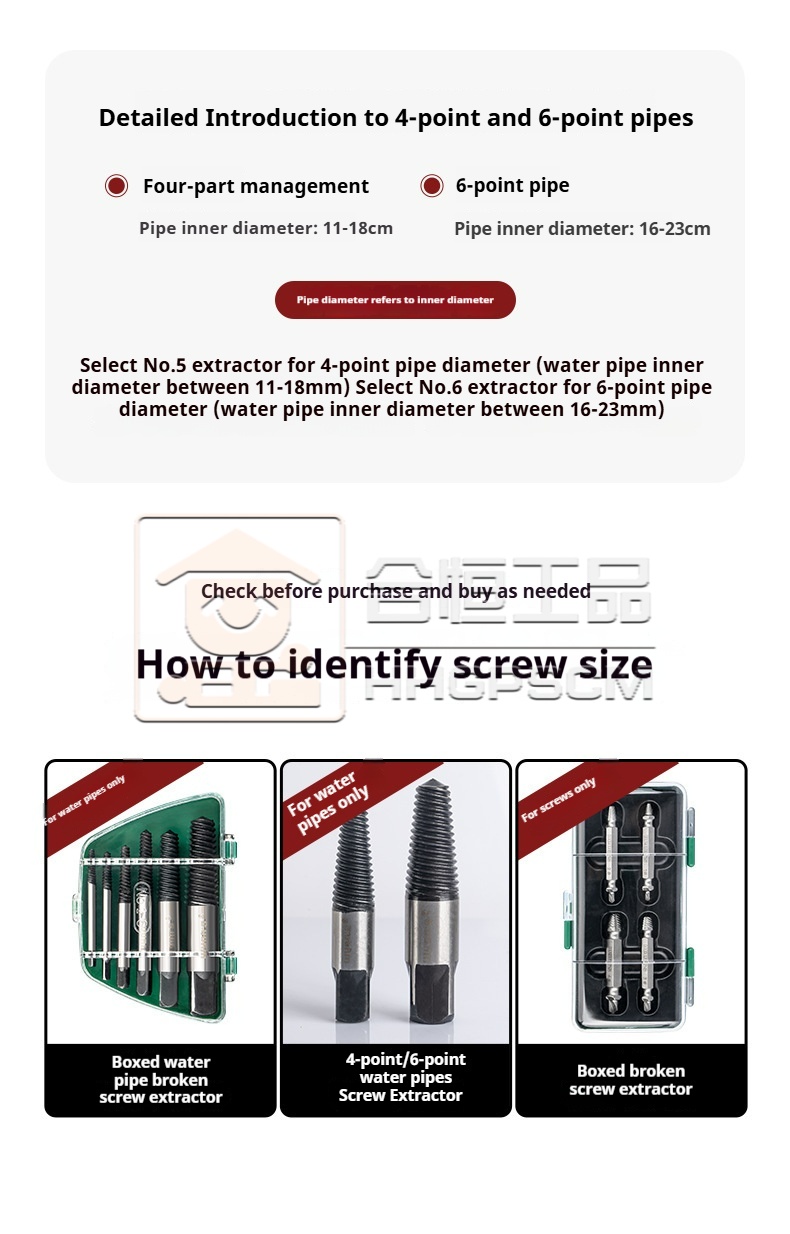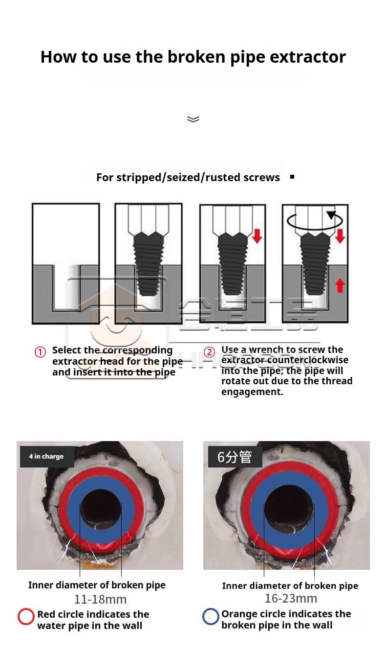 Packing list:1Broken Wire Extractor Broken Pipe Extractor Broken Screw Extractor Set Triangular Valve Faucet Reverse Thread Screw