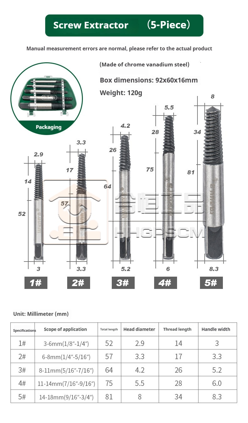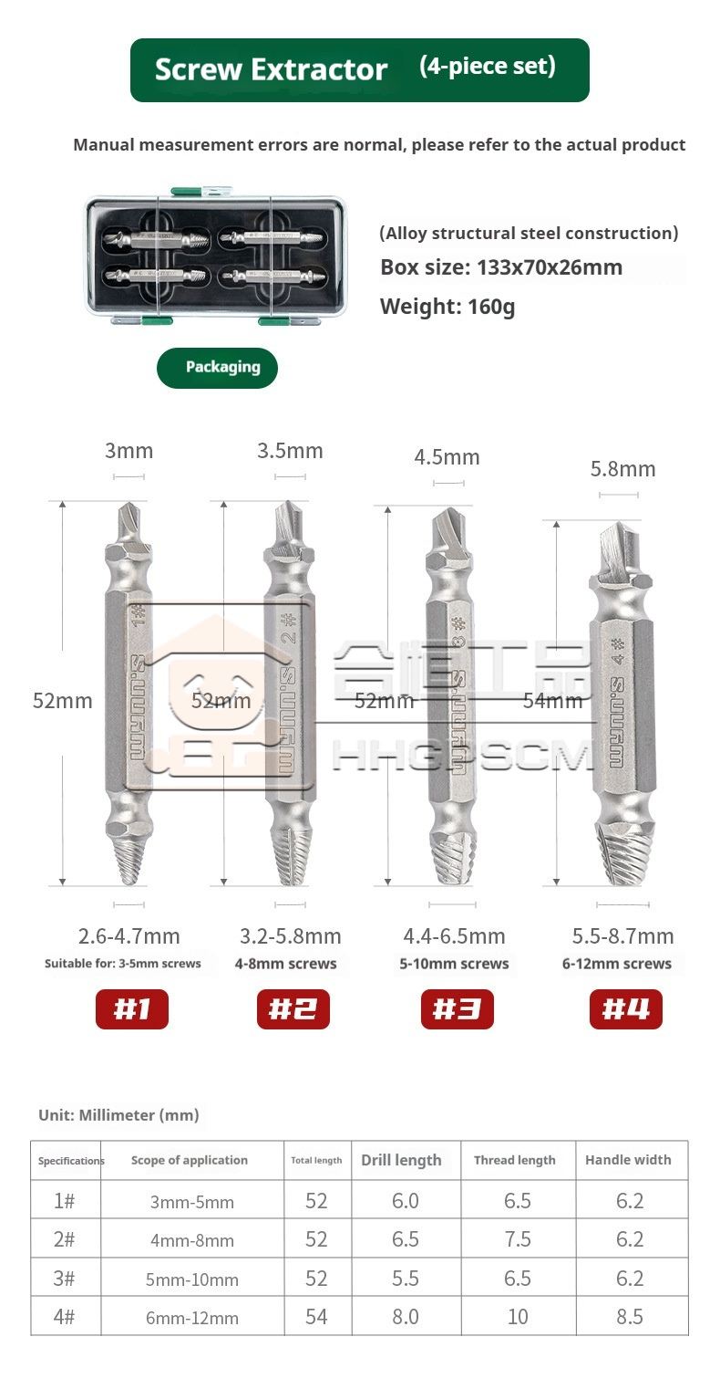 Product name:Broken Wire Extractor Broken Pipe Extractor Broken Screw Extractor Set Triangular Valve Faucet Reverse Thread Screw