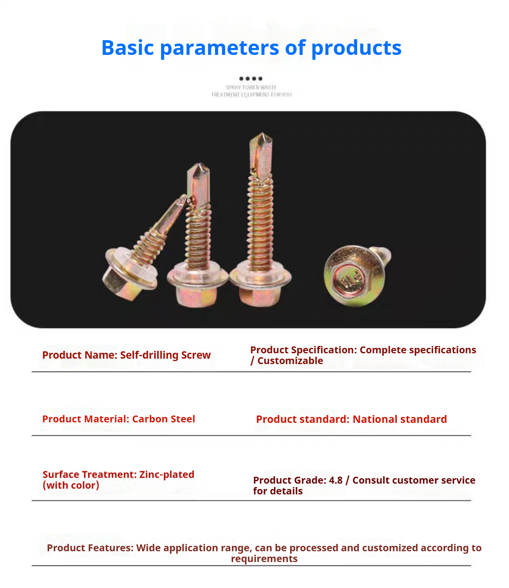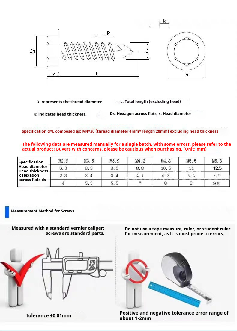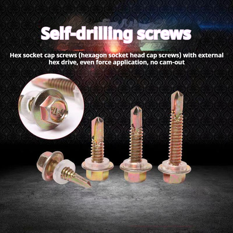 Packing list:1Self-tapping drill-point screws Color steel tile drill-point screws Hex head dovetail screws Hex flange self-tapping screws