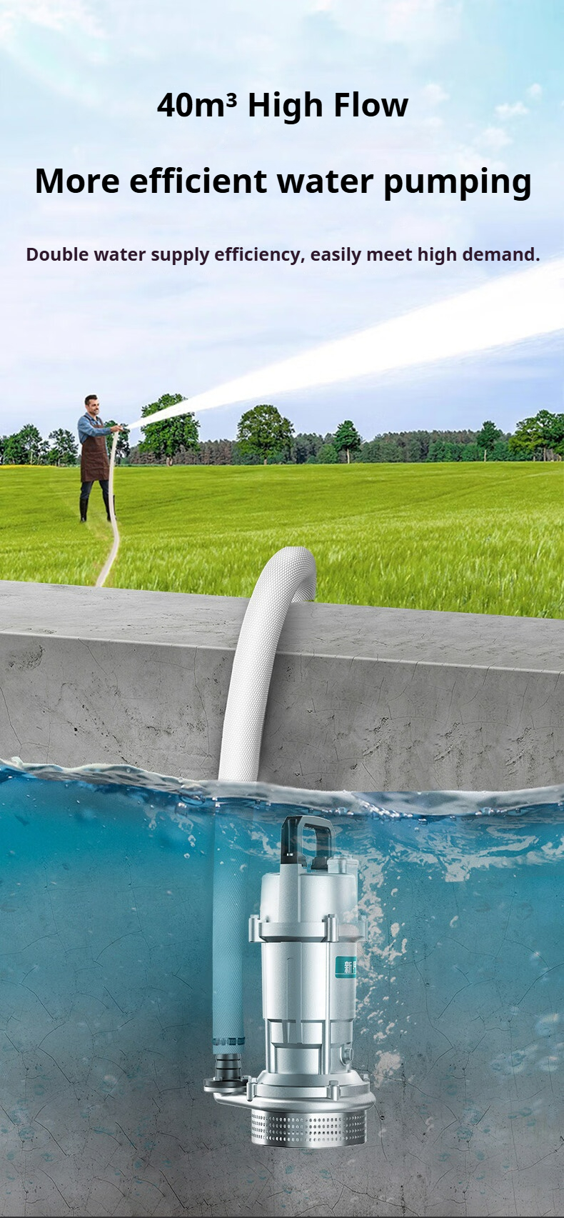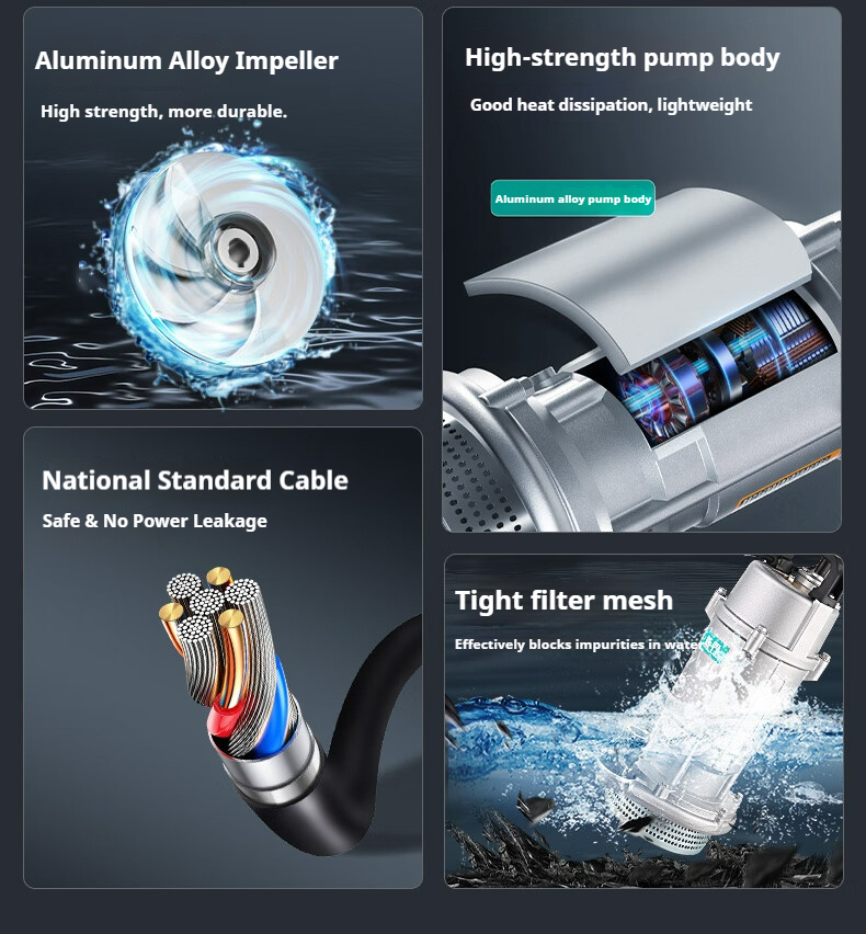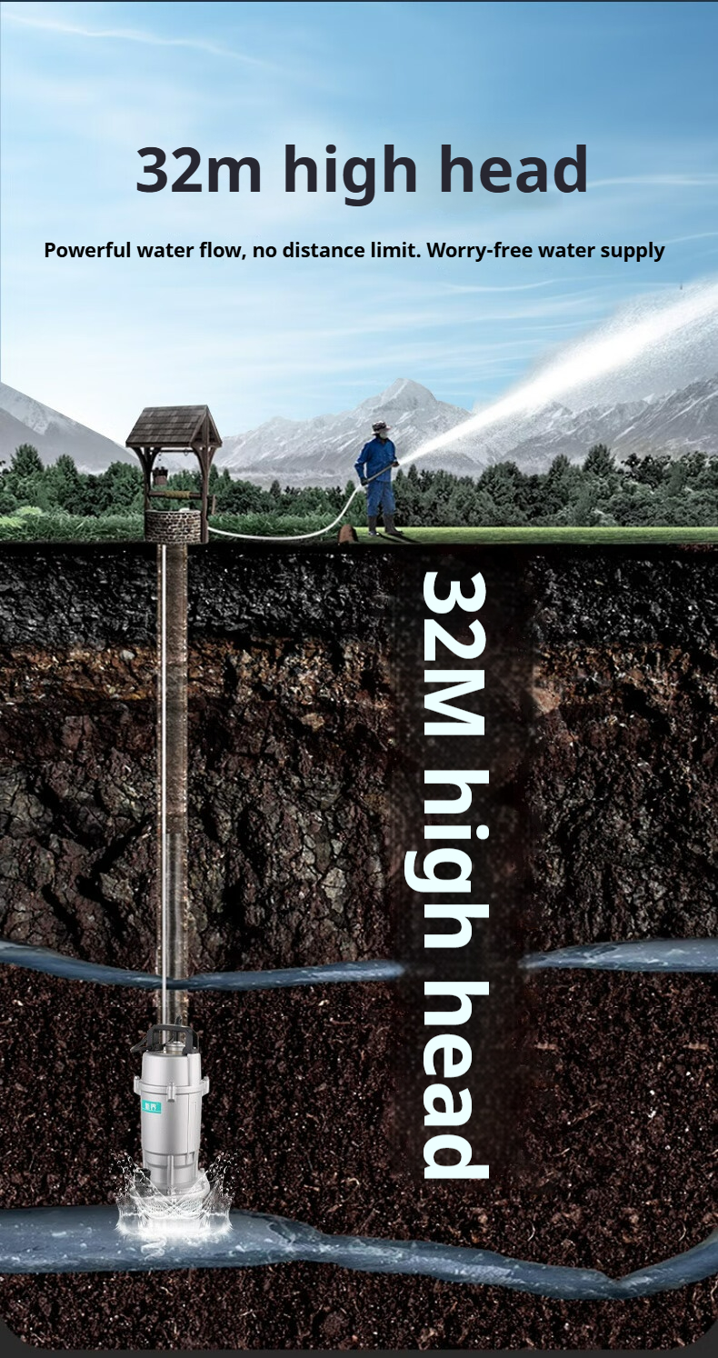 Product name:Submersible Pump Agricultural Irrigation Water Pump Cast Aluminum Drainage Pump for Farm Use Household 220V 750W 1.5 m³/h | 32m Head (1-inch)