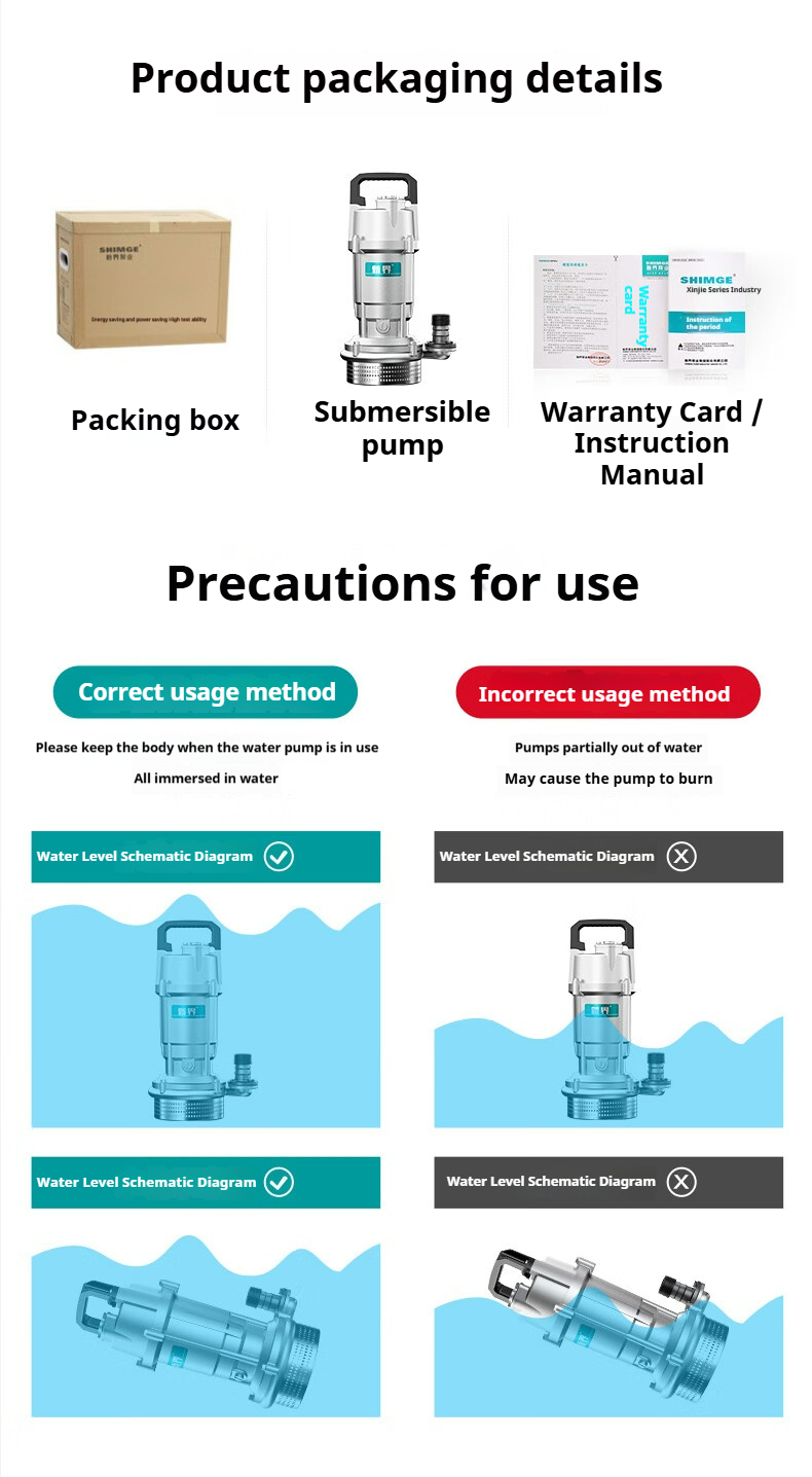 Packing list:1Submersible Pump Agricultural Irrigation Water Pump Cast Aluminum Drainage Pump for Farm Use Household 220V 750W 1.5 m³/h | 32m Head (1-inch)