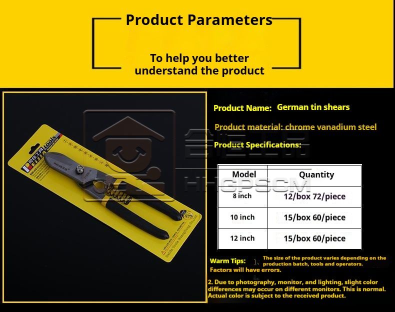 Packing list:1German-Style Sheet Metal Shears - Effort-Saving Sheet Metal Shears Straight-Tip Sheet Metal Shears Manual Sheet Metal Shears
