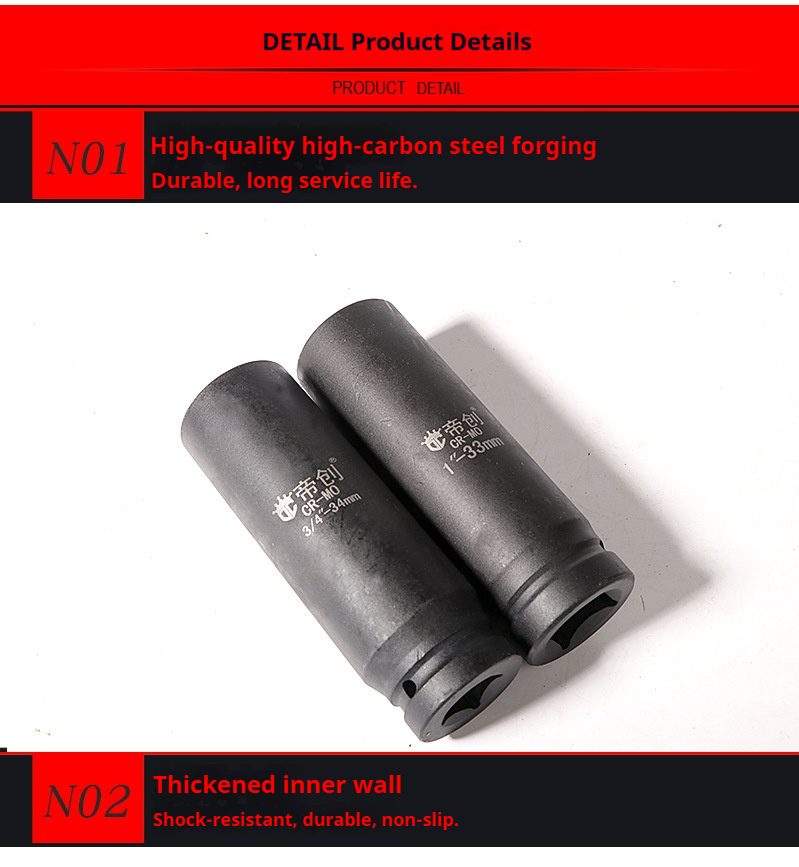 Packing list:1Heavy-Duty 1-inch 3/4-inch 150mm Extended Air Wrench Socket Set with Reinforced Auto Repair Tools Pneumatic Wrench