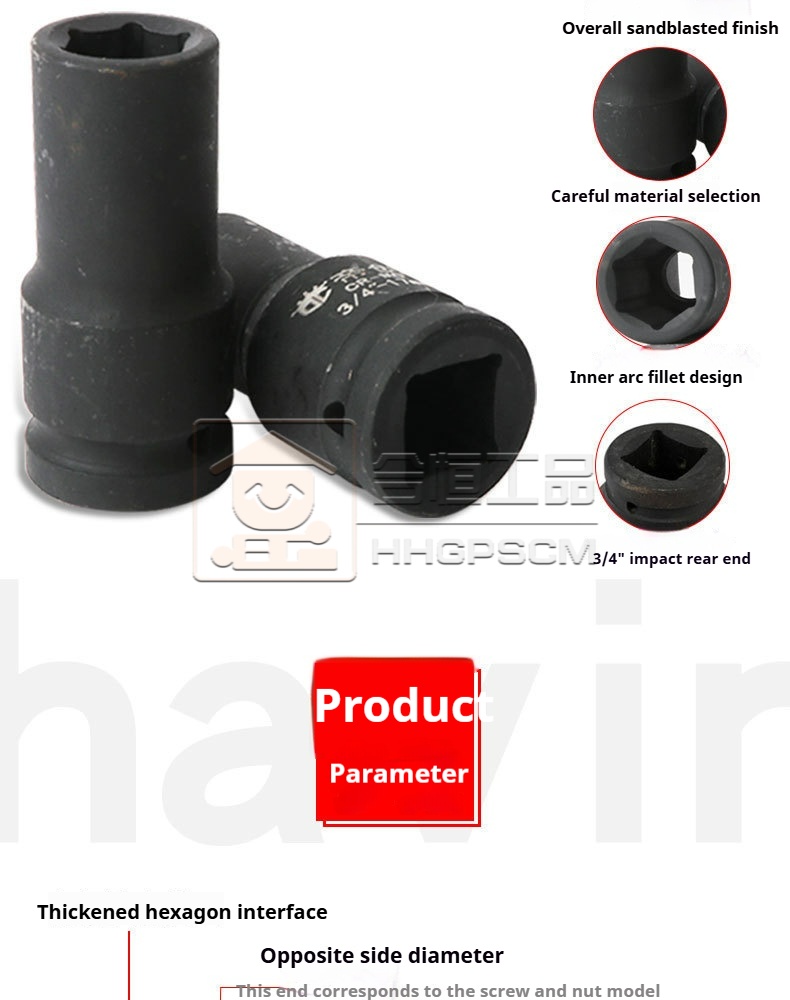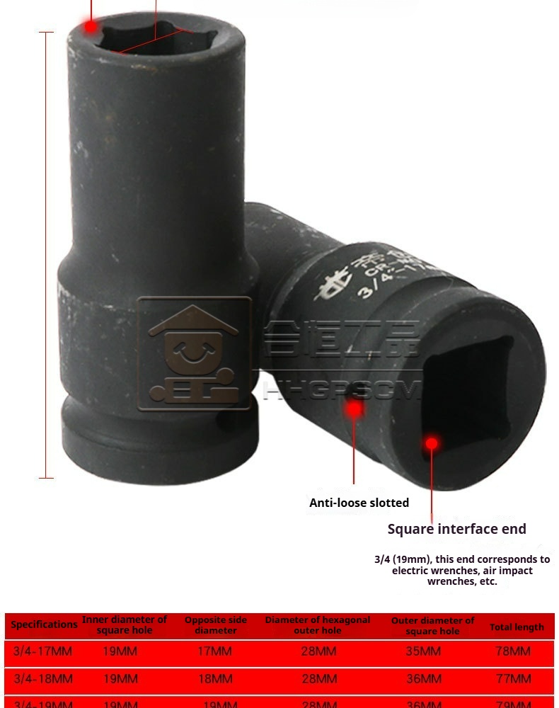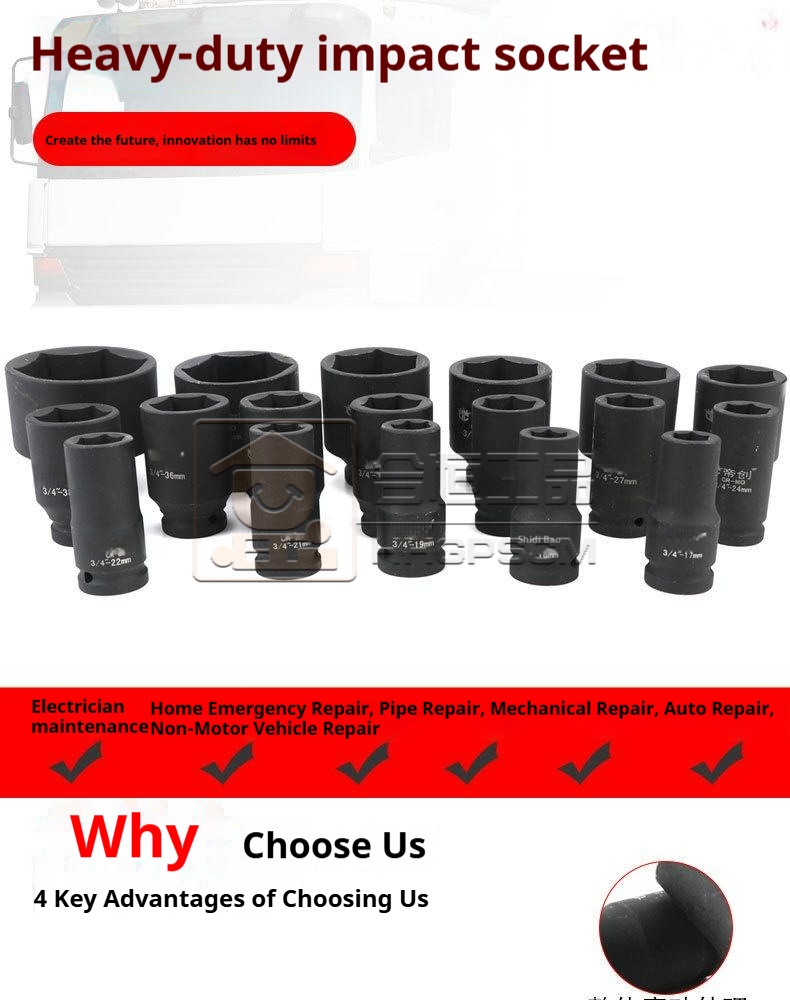 Product name:3/4-inch 80mm Heavy-Duty Socket Head Electric/Pneumatic Hex Wrench Automotive Repair Tool