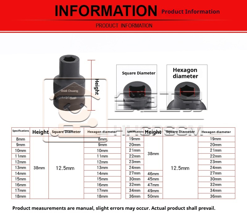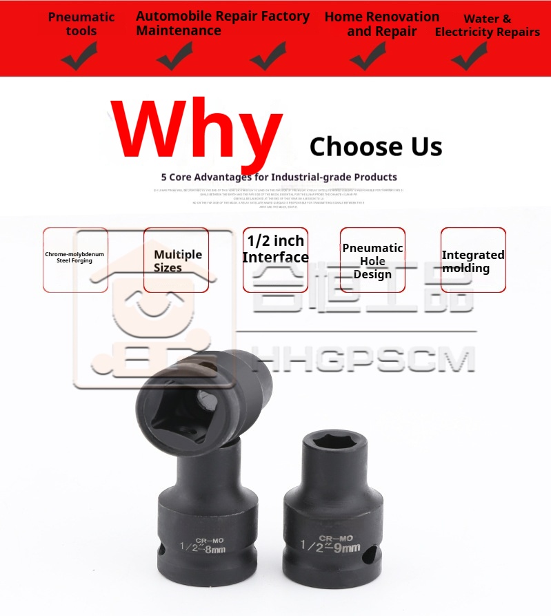 Packing list:1Pneumatic Socket Head Hex 1/2 Series Electric Wrench Socket Head Tire Socket