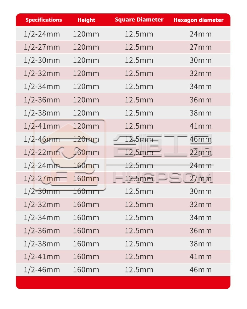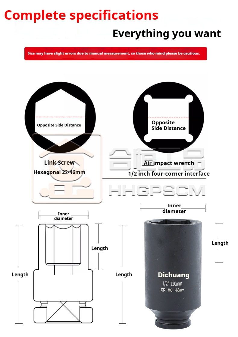 Packing list:1Hardware Tools 1/2" Extended Socket Set 120mm & 160mm Hex Pneumatic Impact Wrench Socket Wrench Chromium-Molybdenum Steel