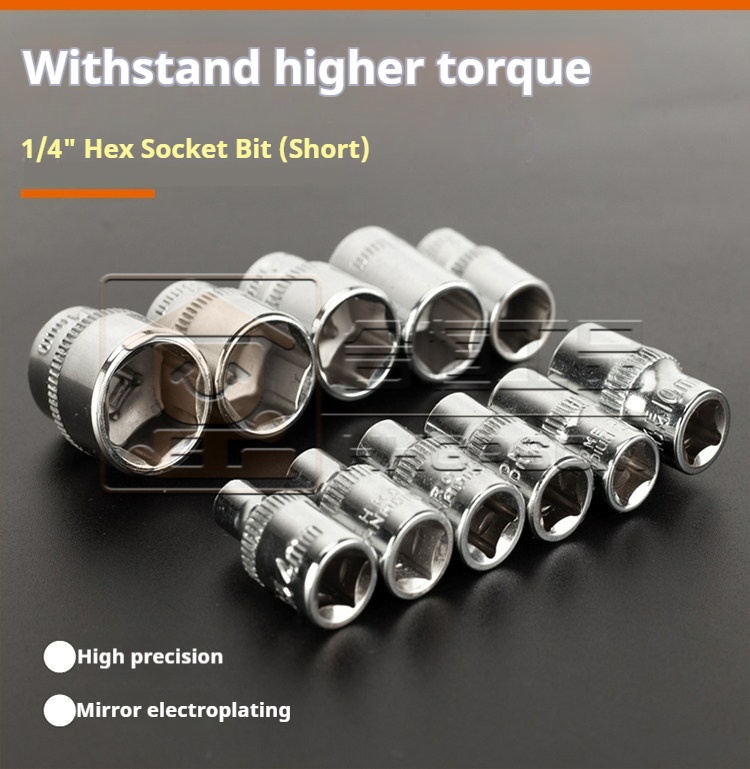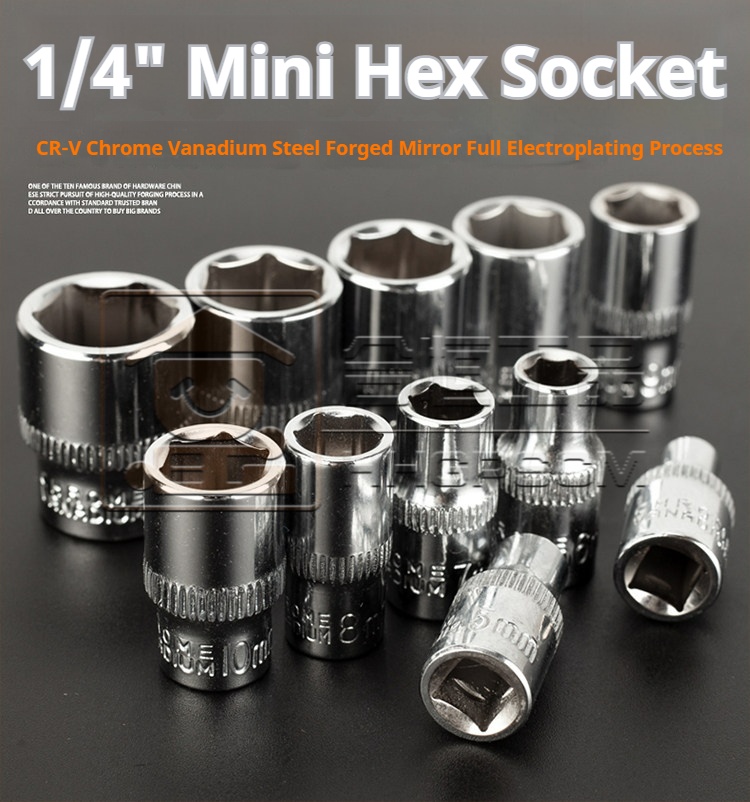 Mirror-Finish Socket 6.3MM Metric 1/4" Hex Socket Head Small Fly Auto Repair Tool Wrench Socket 4-14