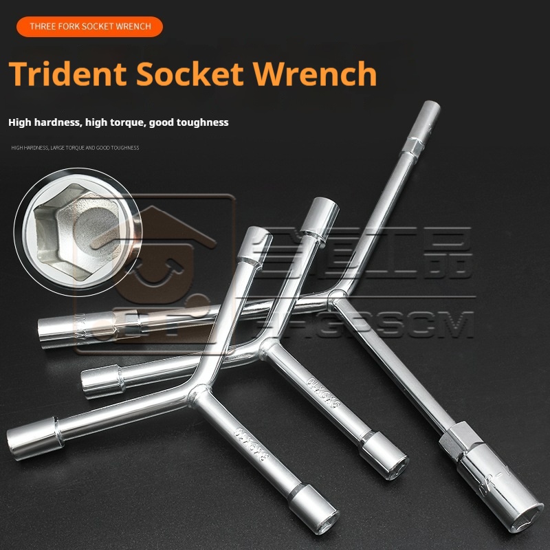 Packing list:1Triple-Socket Wrench Y-Type Extended V-Shaped Hex Socket Multi-Purpose Triangular Socket Tire Wrench