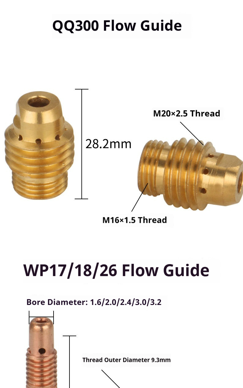 Product name:WP-17/18/26 QQ-150-1/200/300 Tungsten Inert Gas (TIG) Welding Torch Flow Guide Connector Tungsten Electrode Holder