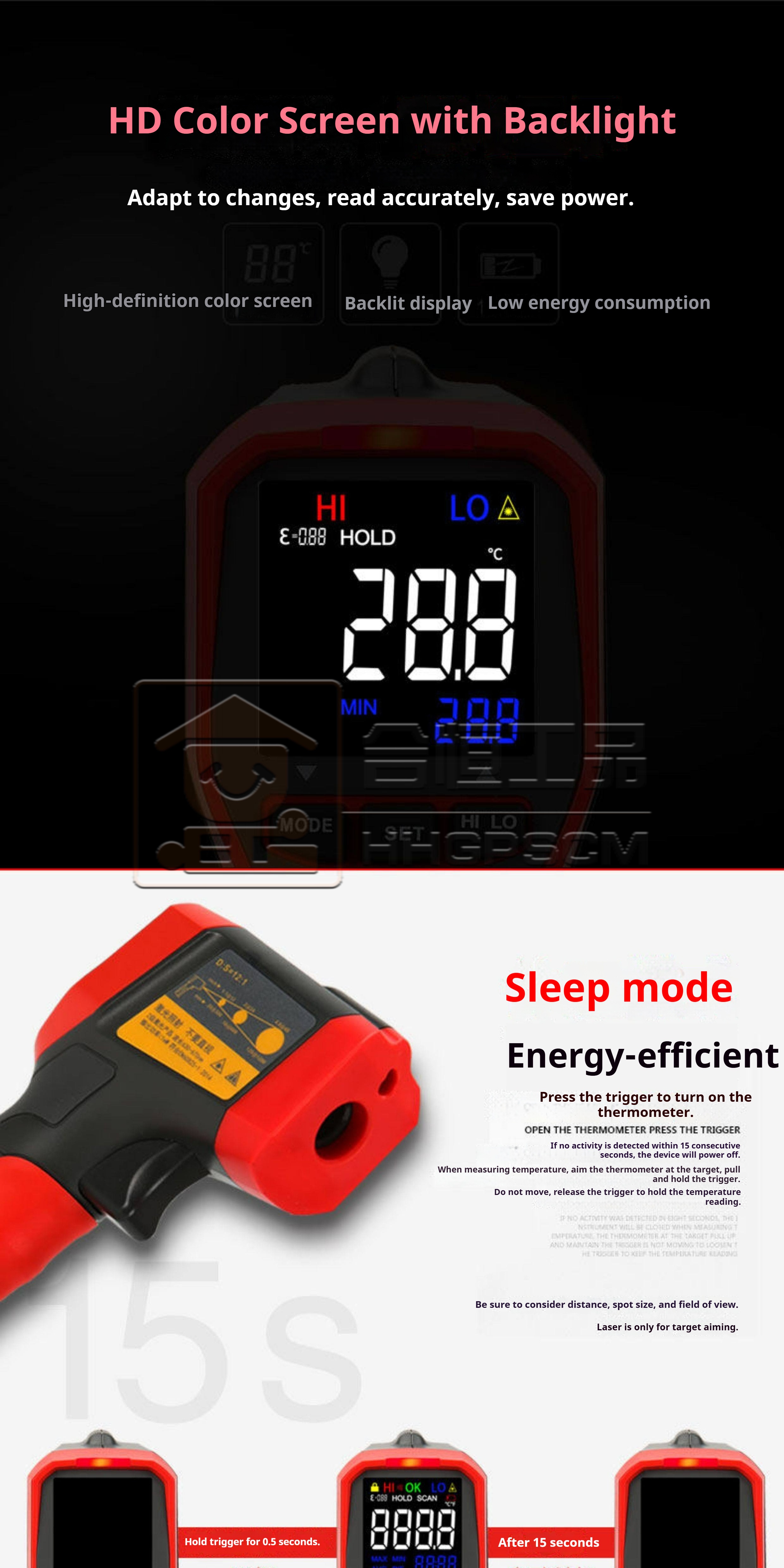 Product name:U-Lead UT303 Infrared Thermometer: High-Precision Industrial Temperature Gun, Digital Thermometer, Water and Oil Temperature Gun