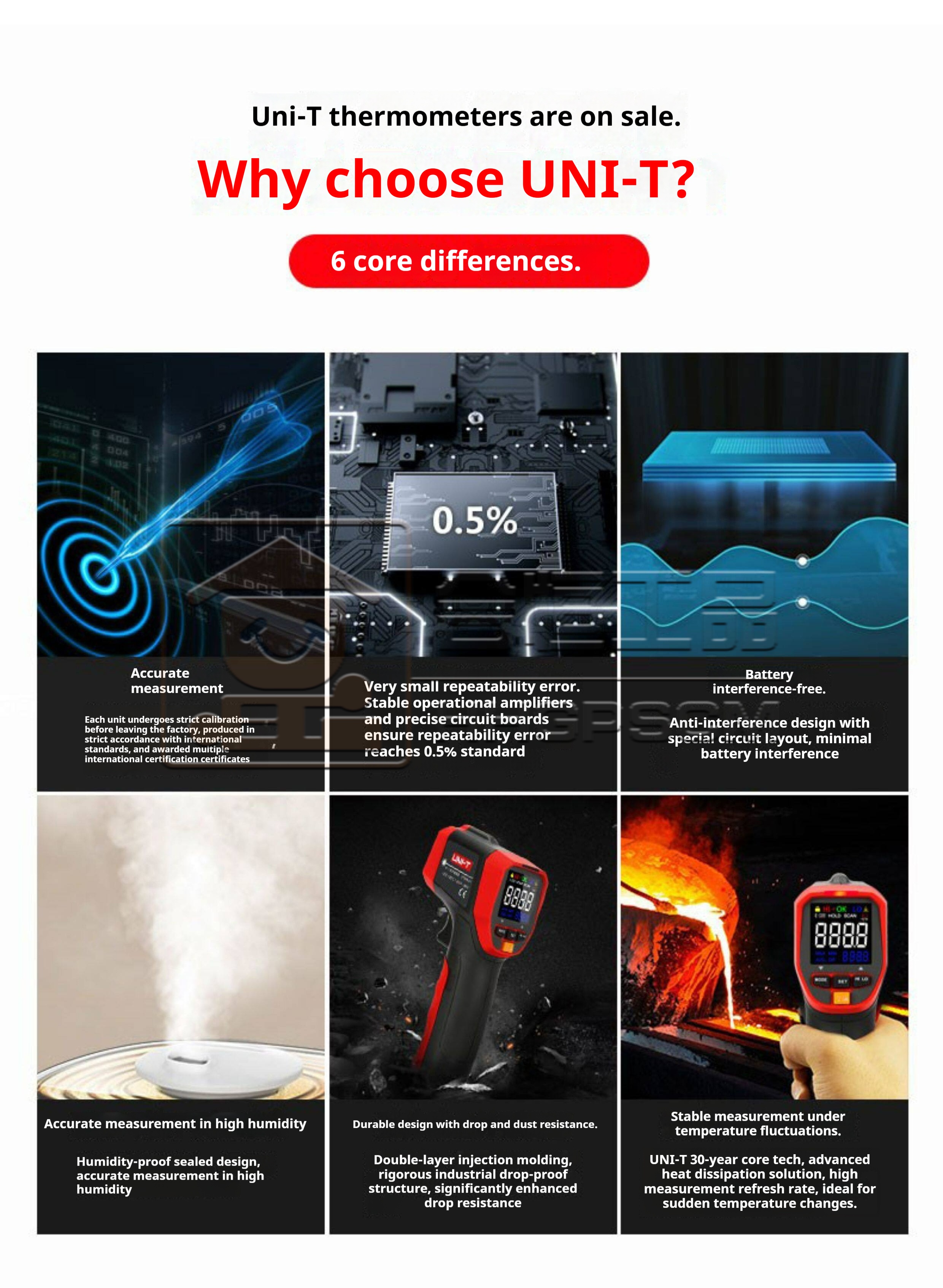 Packing list:1U-Lead UT303 Infrared Thermometer: High-Precision Industrial Temperature Gun, Digital Thermometer, Water and Oil Temperature Gun
