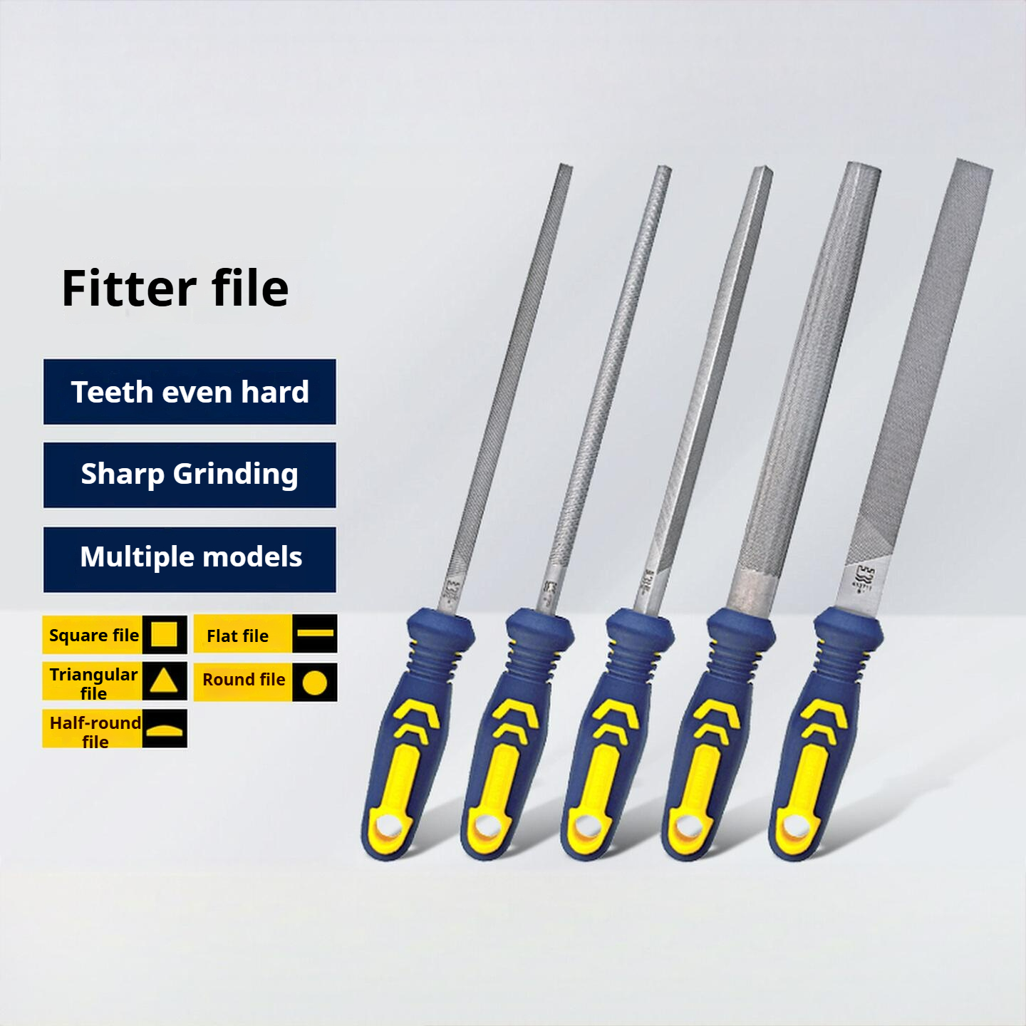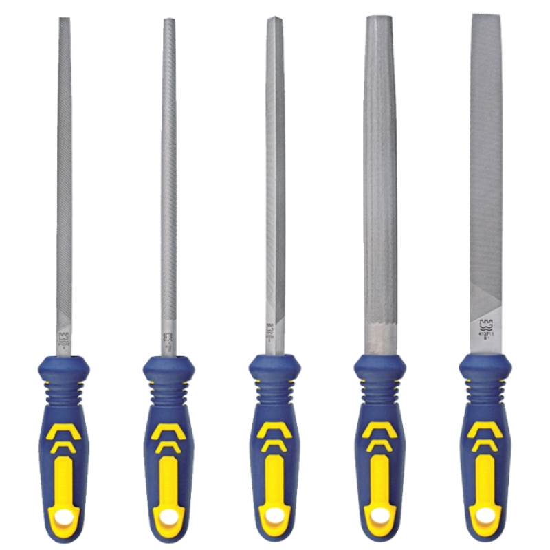 Plastic-handled fine-tooth round file Steel flat file with fine, medium and coarse teeth Metal and woodworking grinding tool Flat rasp, 12/14 inches