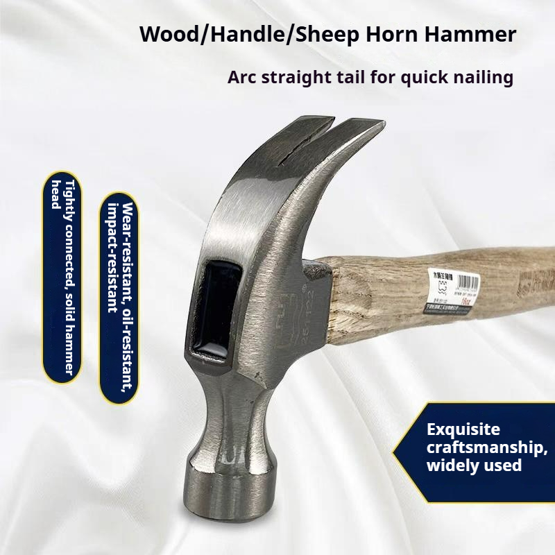 Wooden-Handled Claw Hammer Carpenter's Tool Household Tool Wooden-Handled Mallet Woodworking Hammer